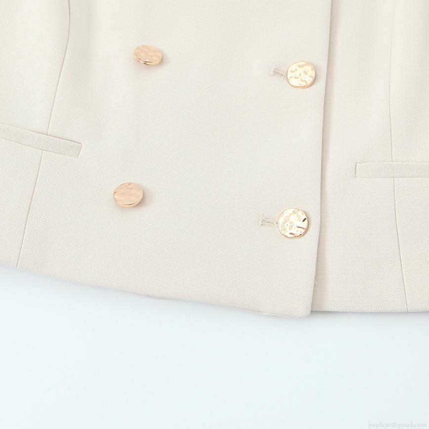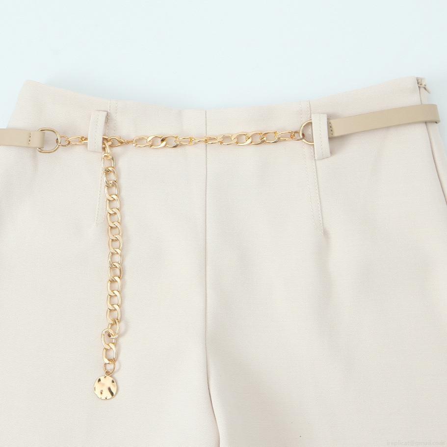 • Women's Elegant 2 Piece Suit Set Double Breasted Round Neck Short Jacket and High Waist Wide Leg Trousers with Gold Chain Belt Office Lady Commute Outfit