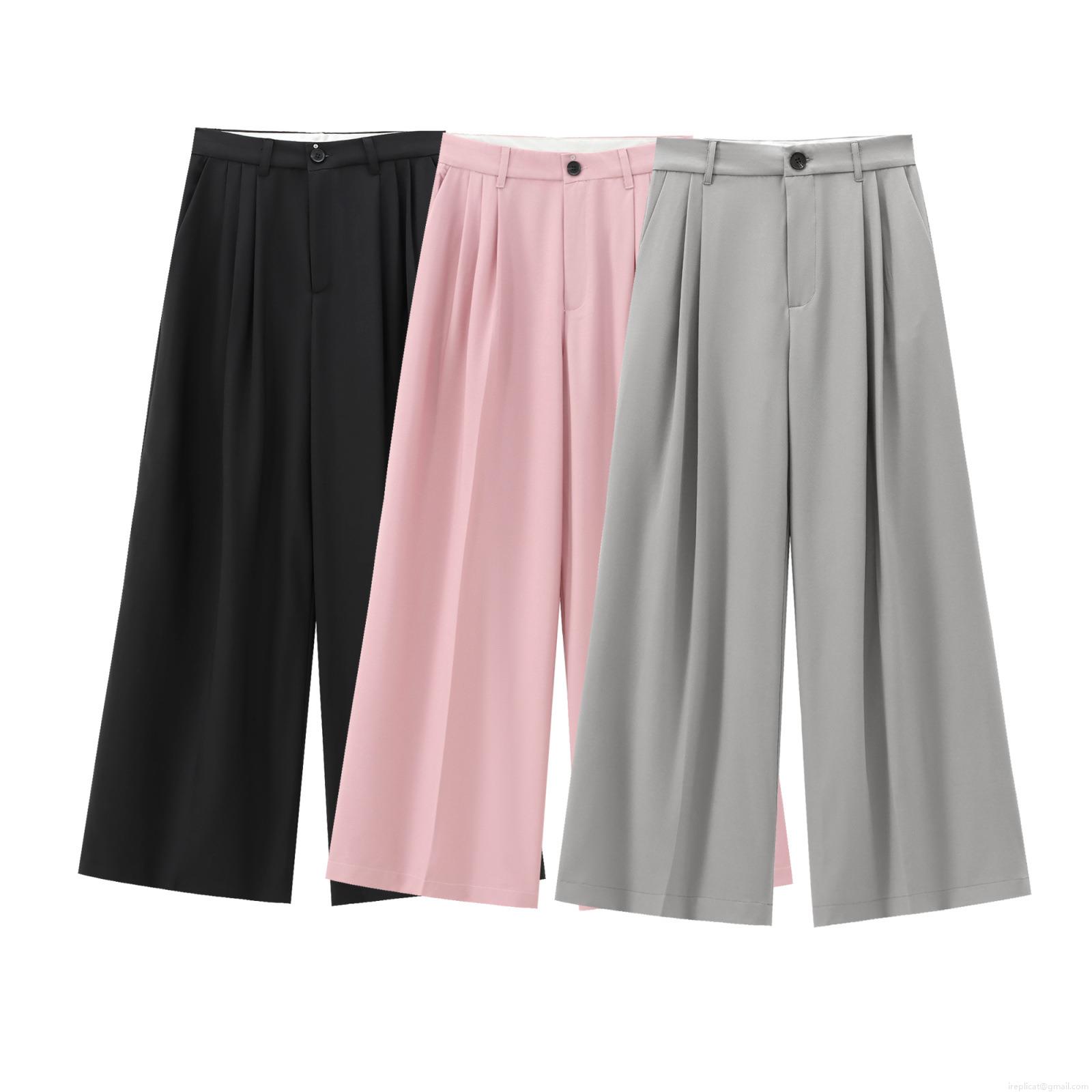 Solid Color, Pleats, Buttons, High-waisted, Back Metal Adjustment Buckle