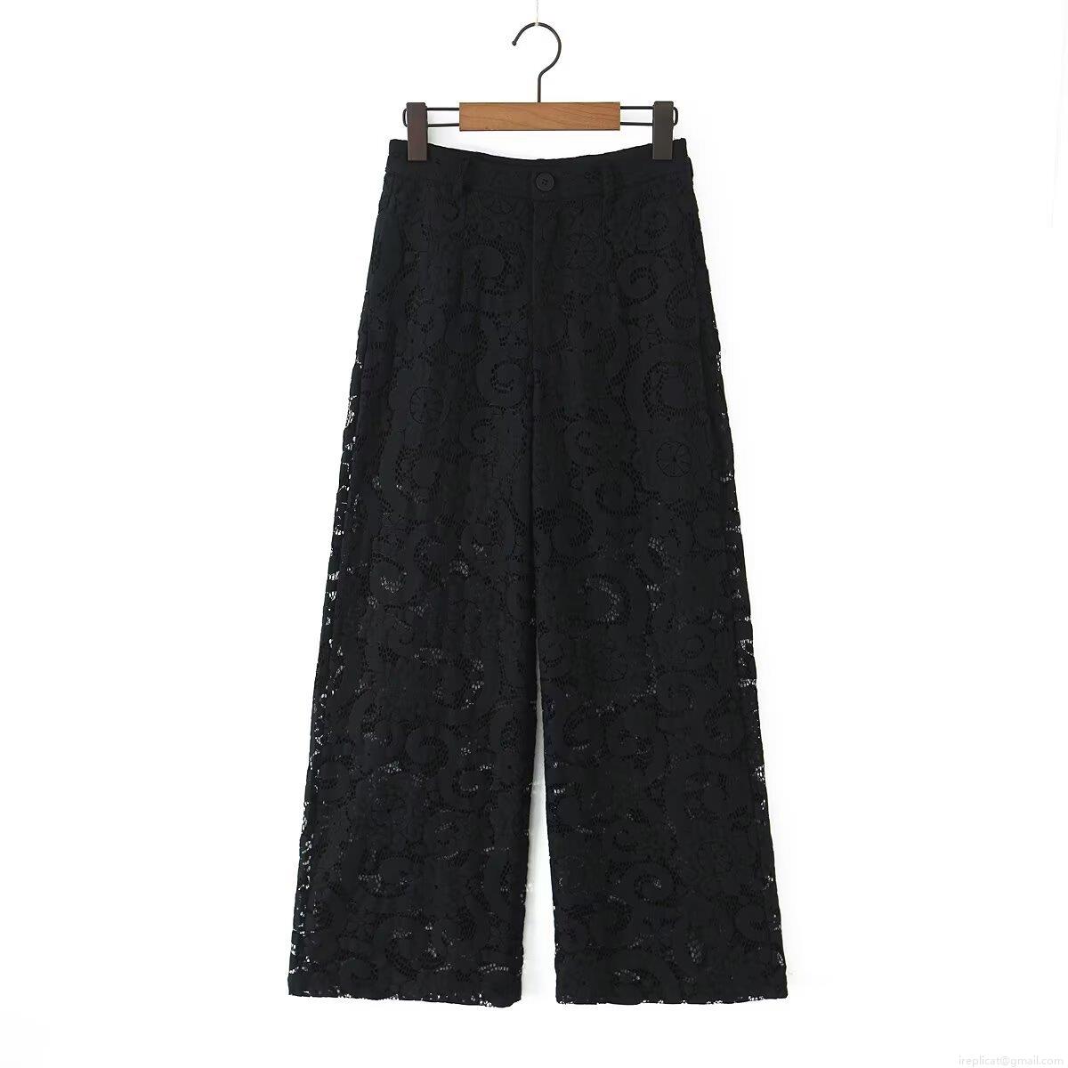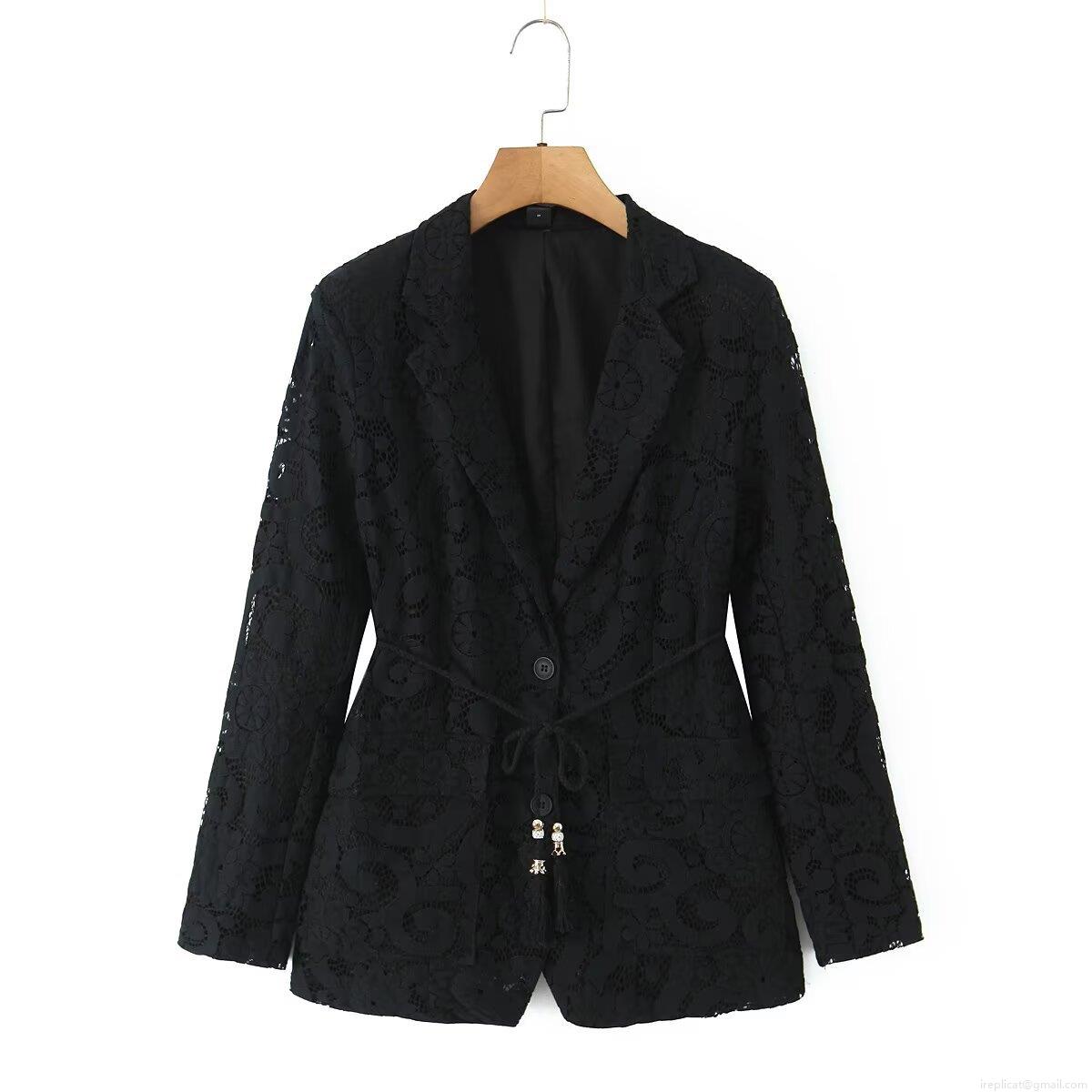 • Women's Elegant Black Lace Suit Set Two Piece Floral Hollow Out Blazer Jacket and Wide Leg Pants Streetwear Autumn Office Outfits With Braided Belt