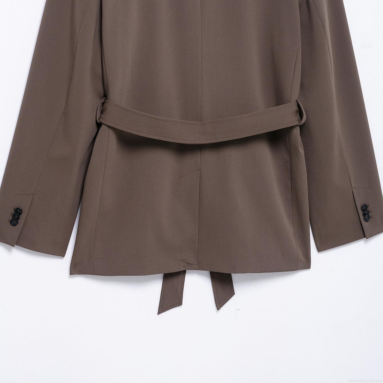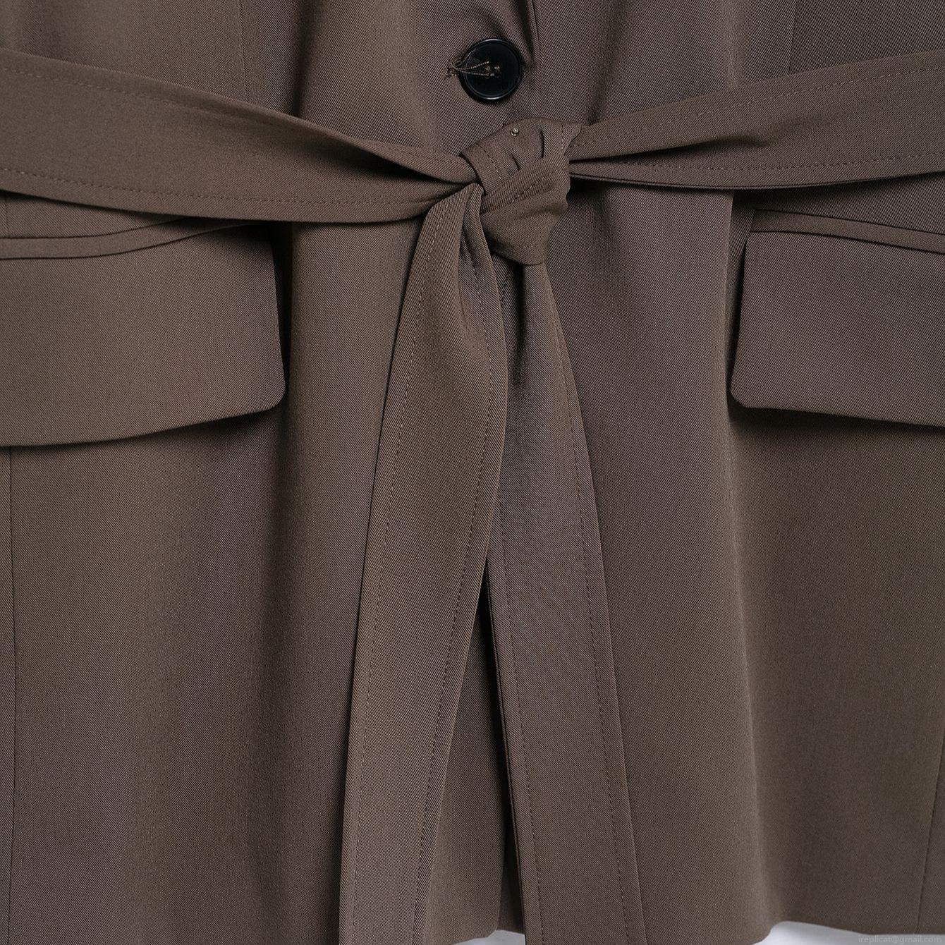• Women's Elegant Caramel 2-Piece Blazer Set Long Sleeve Tie-Waist Jacket and Wide-Leg Pants Professional Office Suit Polyester Formal Outfit