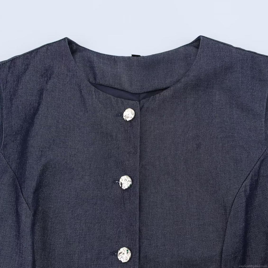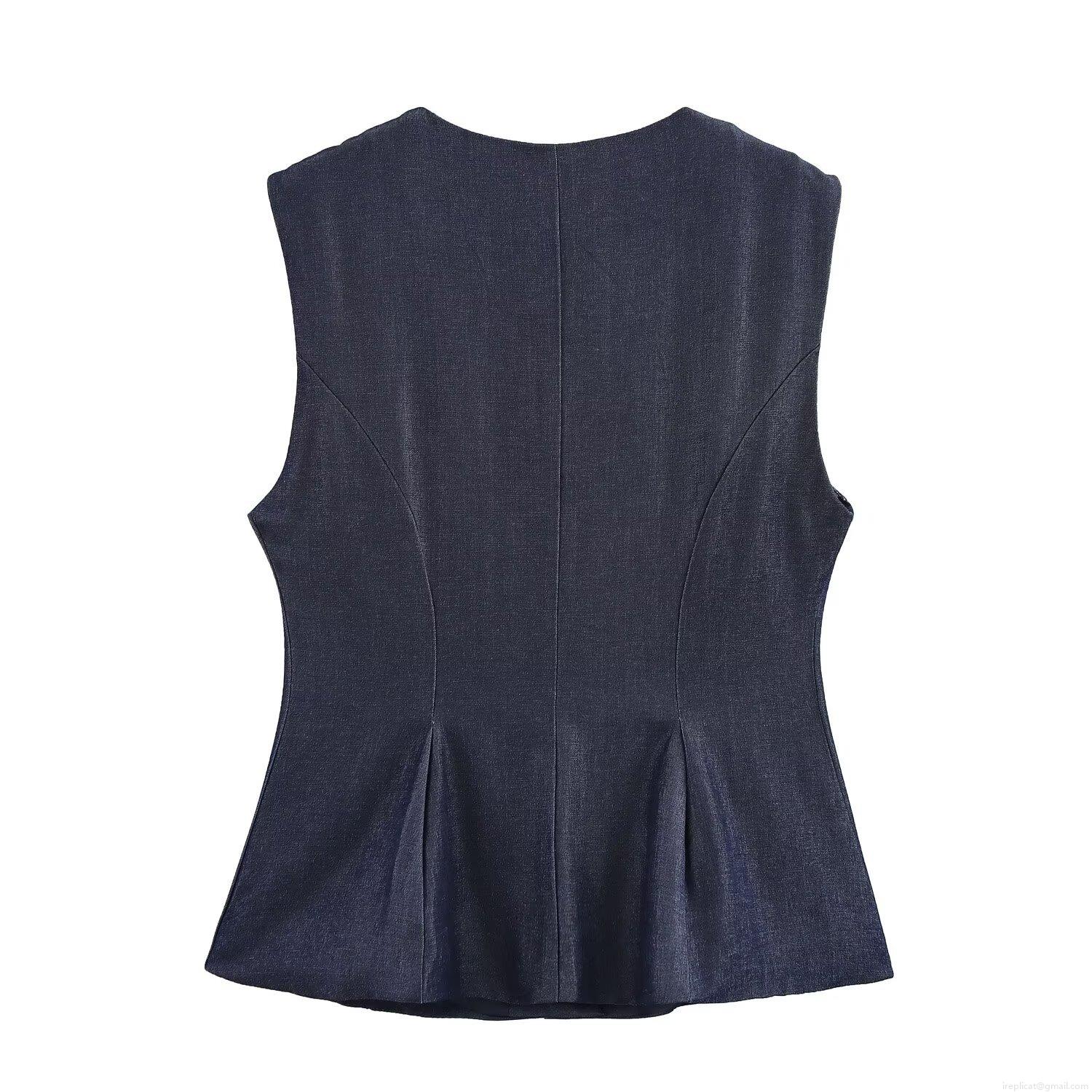 Women's Elegant Denim Blue Cotton Blend Sleeveless Vest And High Waist Wide Leg Trousers Casual Pants Two Piece Set For Office Commute Summer Fashion