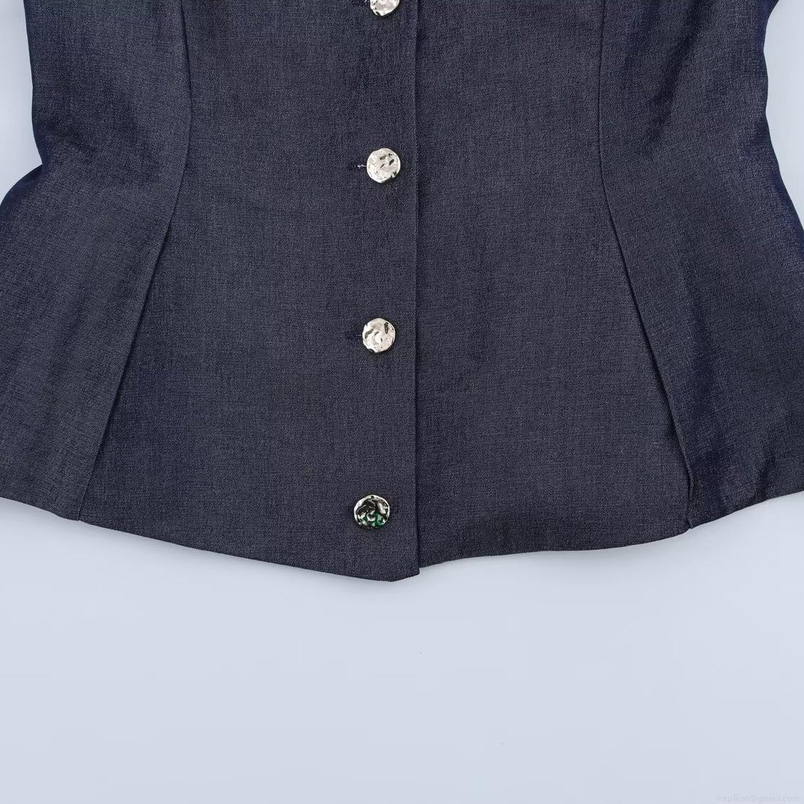 • Women's Elegant Denim Blue Cotton Blend Sleeveless Vest And High Waist Wide Leg Trousers Casual Pants Two Piece Set For Office Commute Summer Fashion