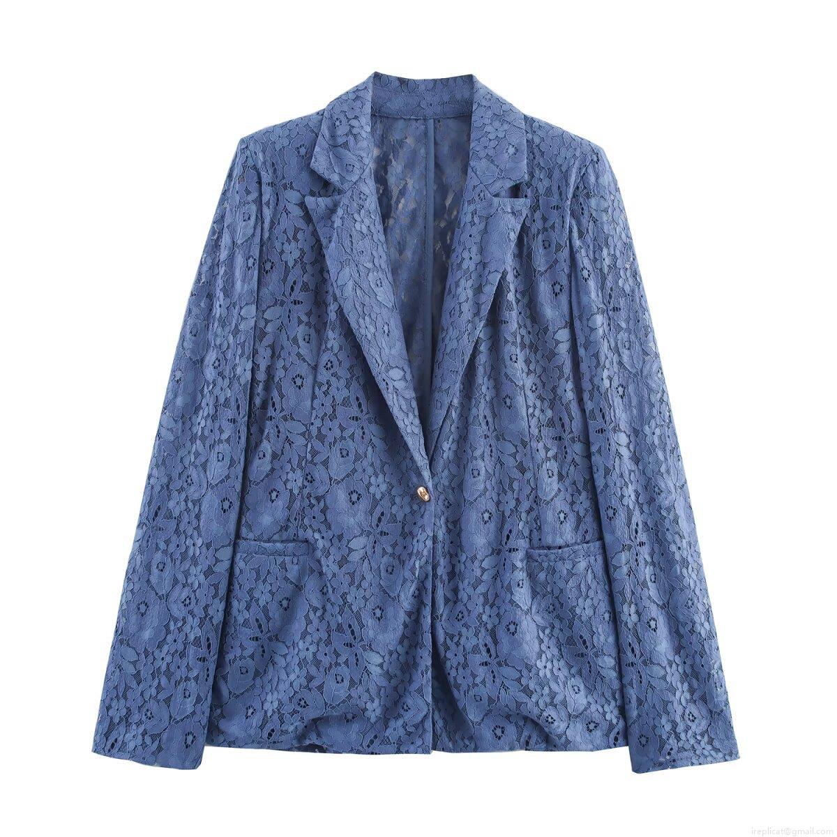 • Women's Elegant Floral Lace Two Piece Set Single Breasted Blazer Jacket And Matching Wide Leg Pants Hollow Out Streetwear Outfits For Party Clubwear Office Ladies Fall Autumn Blue