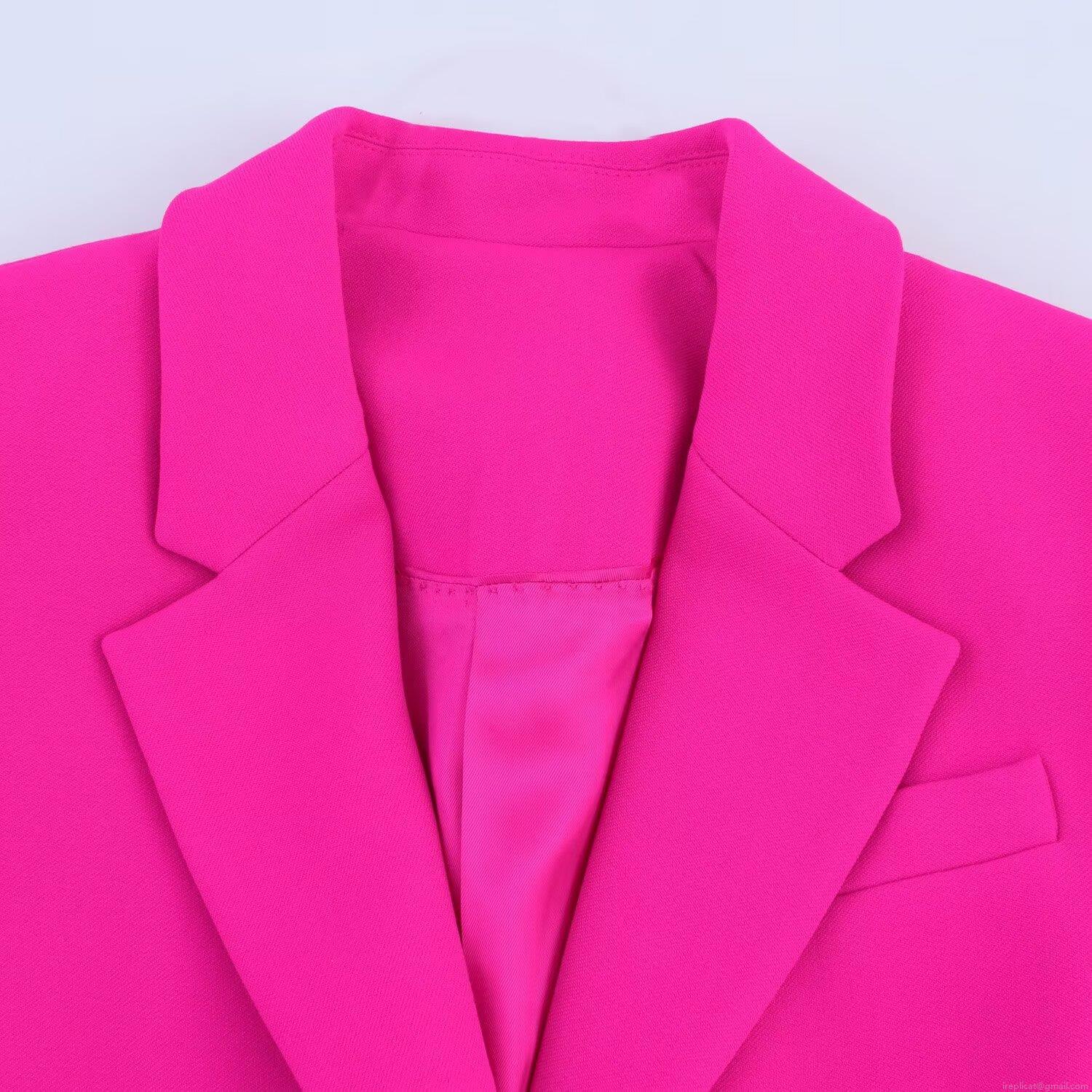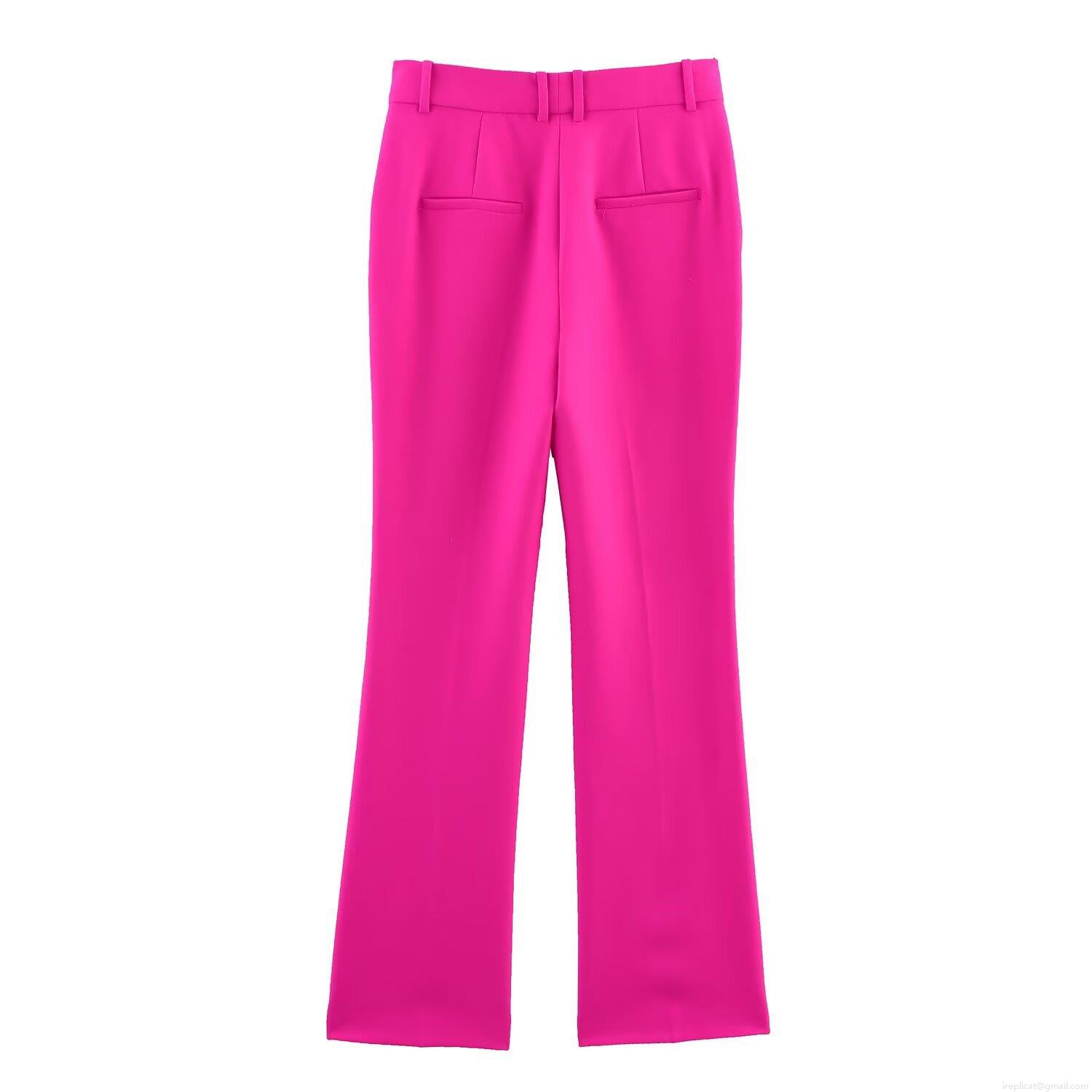 • Women's Elegant Fuchsia Two Piece Pantsuit Slim Fit Notch Lapel Blazer and Flared Trousers Set Polyester Spandex Business Casual Suit for Office Party