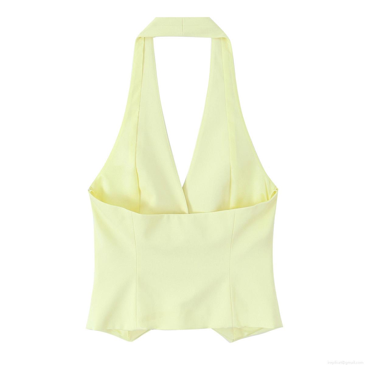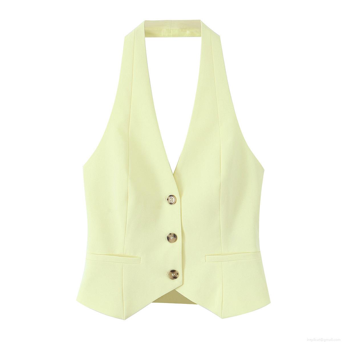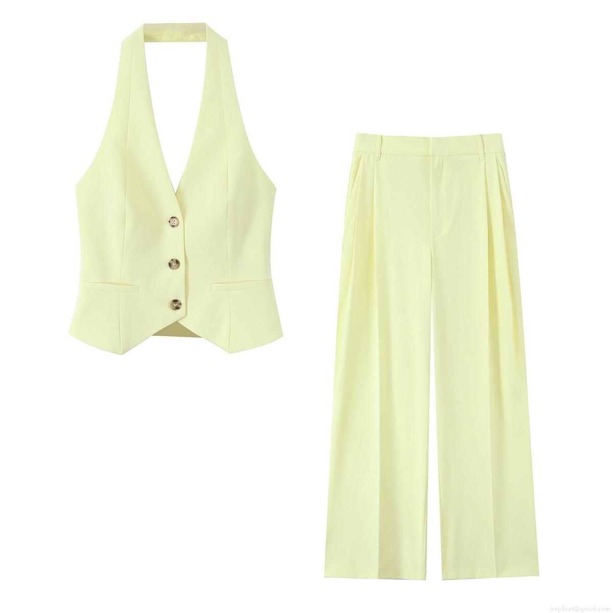 • Women's Elegant Halter Neck Sleeveless Vest Top And High Waist Wide Leg Pants Two Piece Set Solid Color Polyester Summer Casual Suit