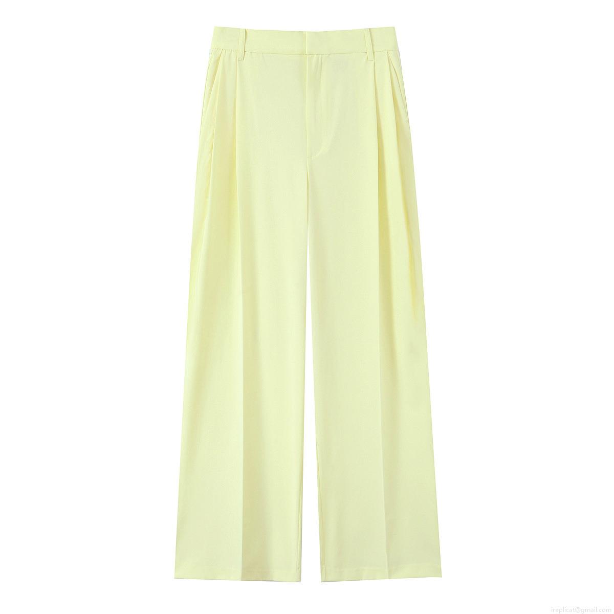 Solid Color, Pleats, Buttons, Neckband, Wide-leg