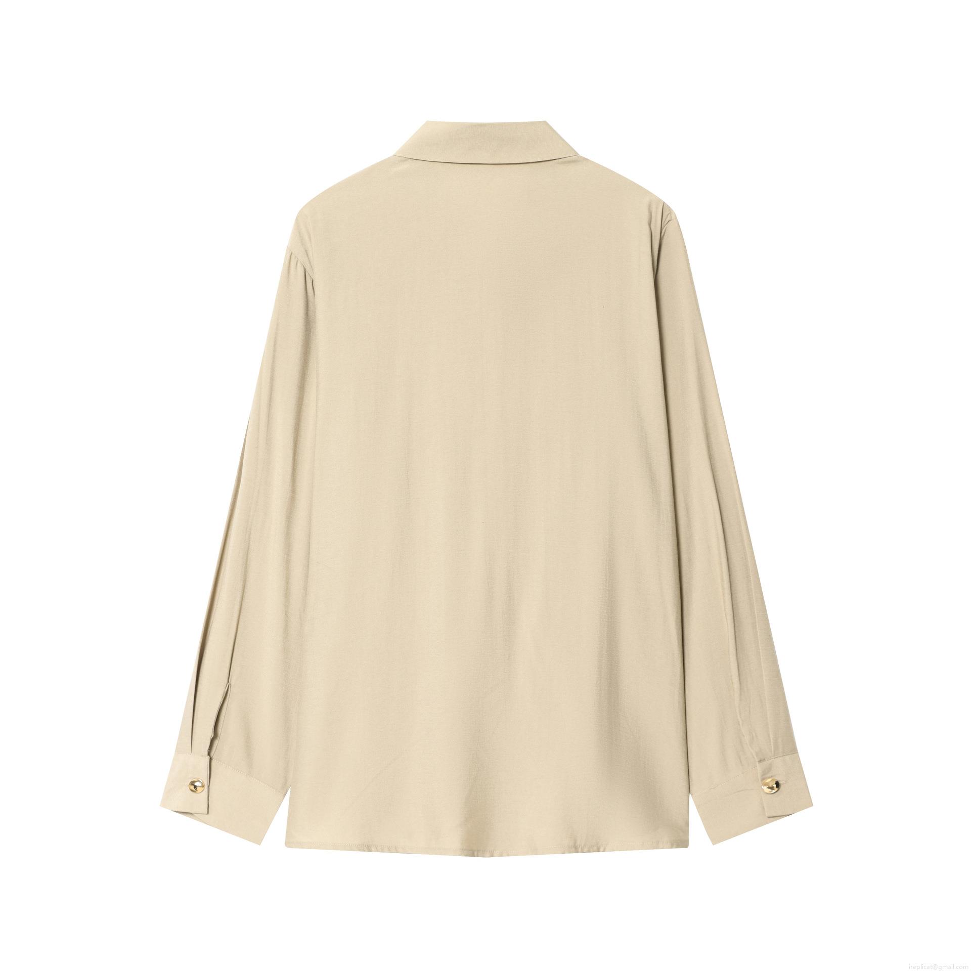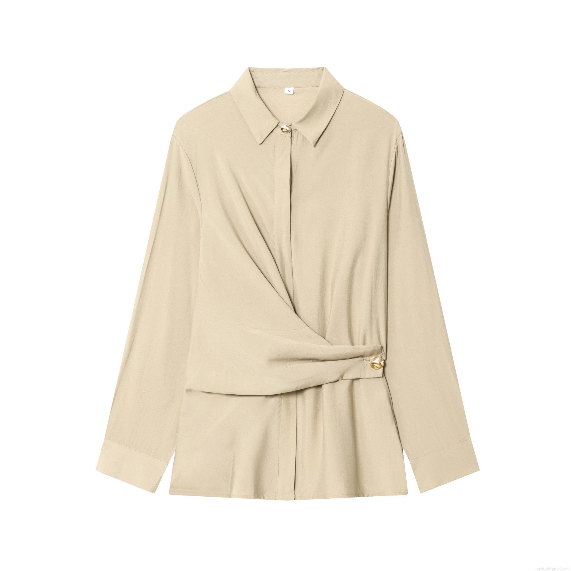 • Women's Elegant Khaki Two Piece Set Long Sleeve Wrapped Shirt With Gold Buttons And High Waist Wide Leg Pants Casual Office Streetwear Co-ord