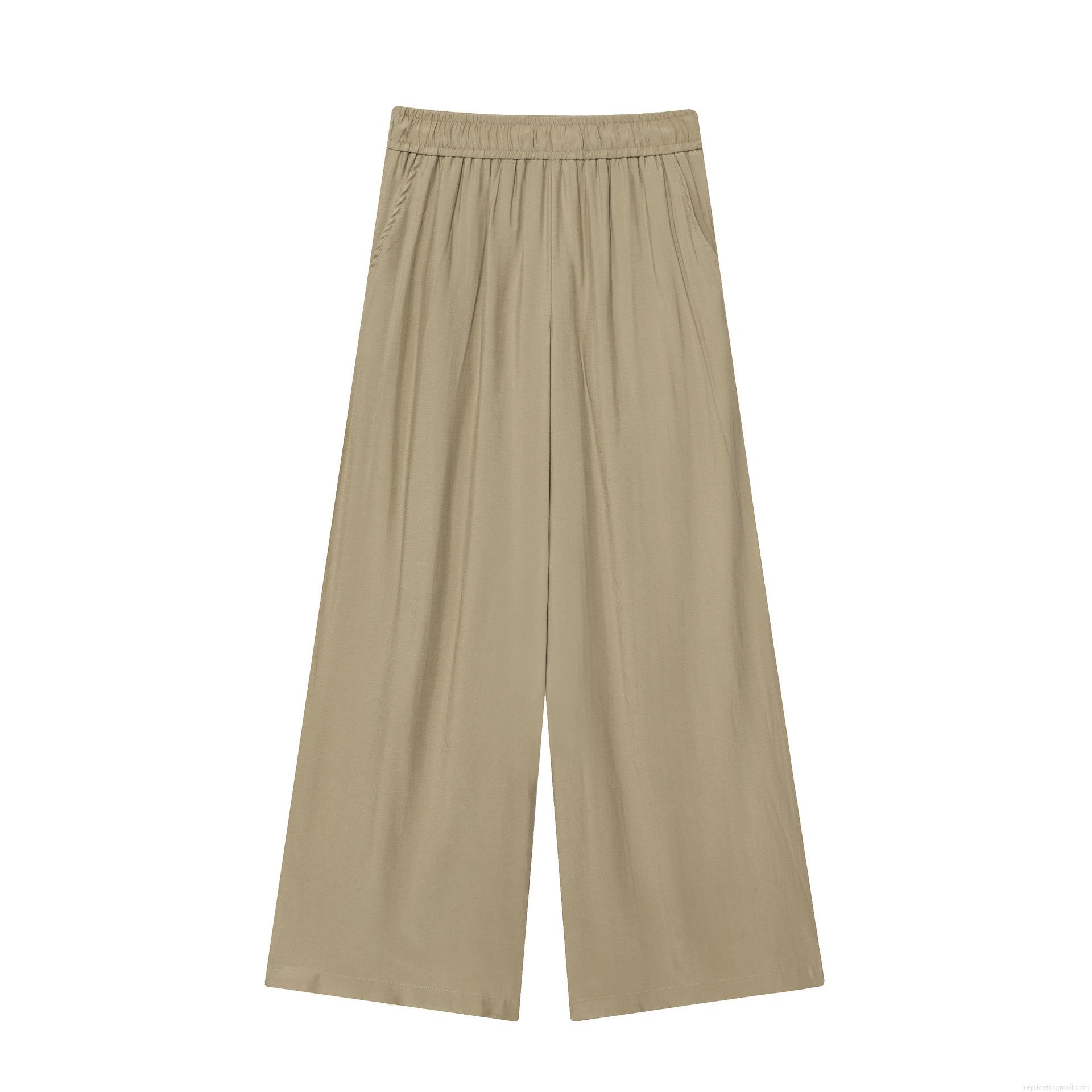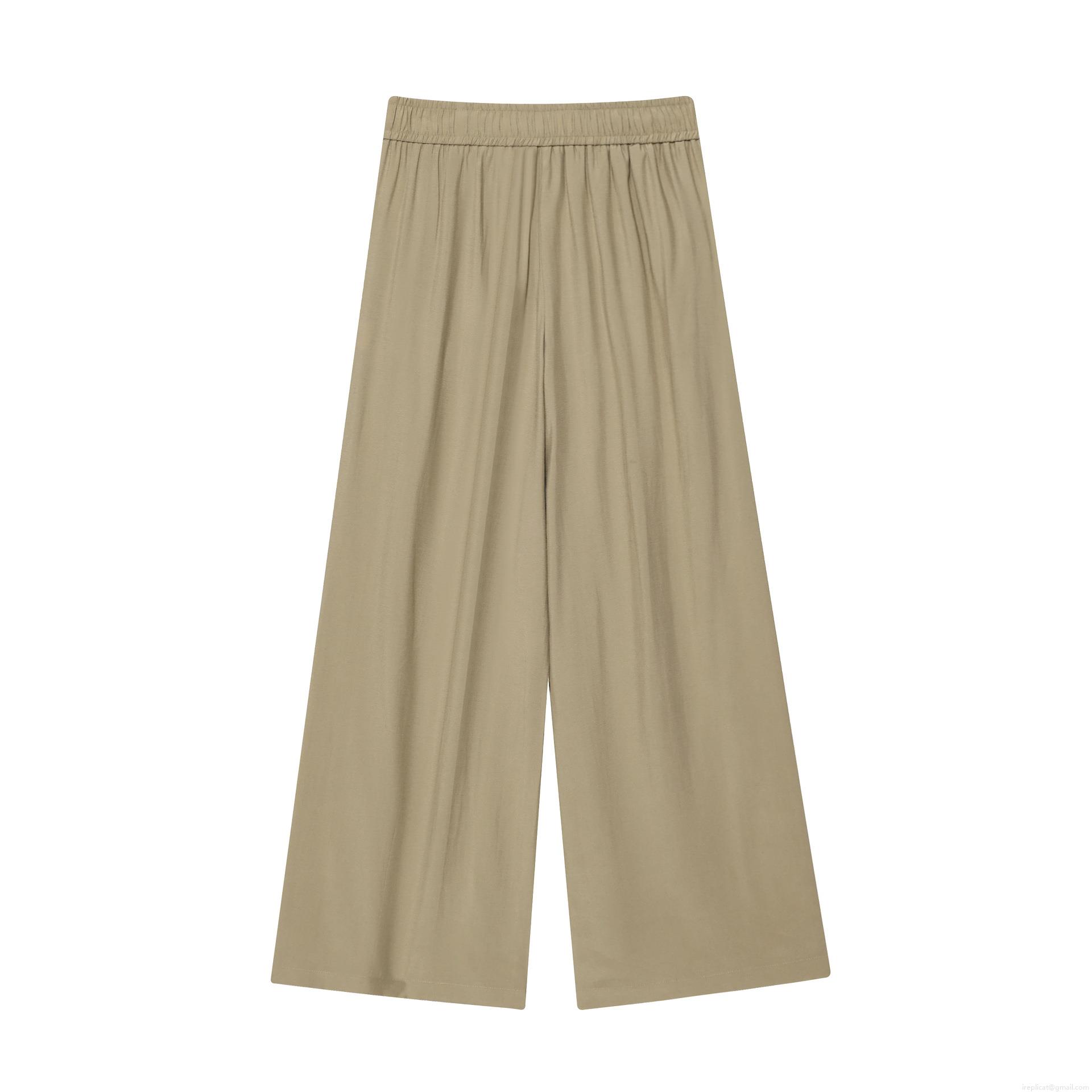 Solid Color, Pleated Decoration, Gold Buttons, Wide-leg Cut, Wrap-around Knot