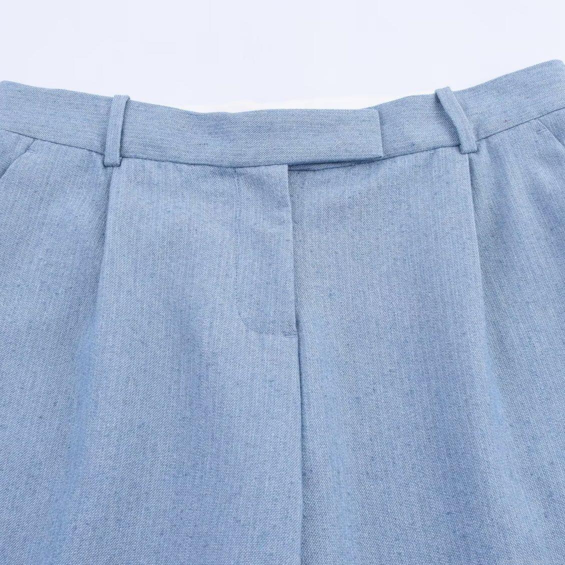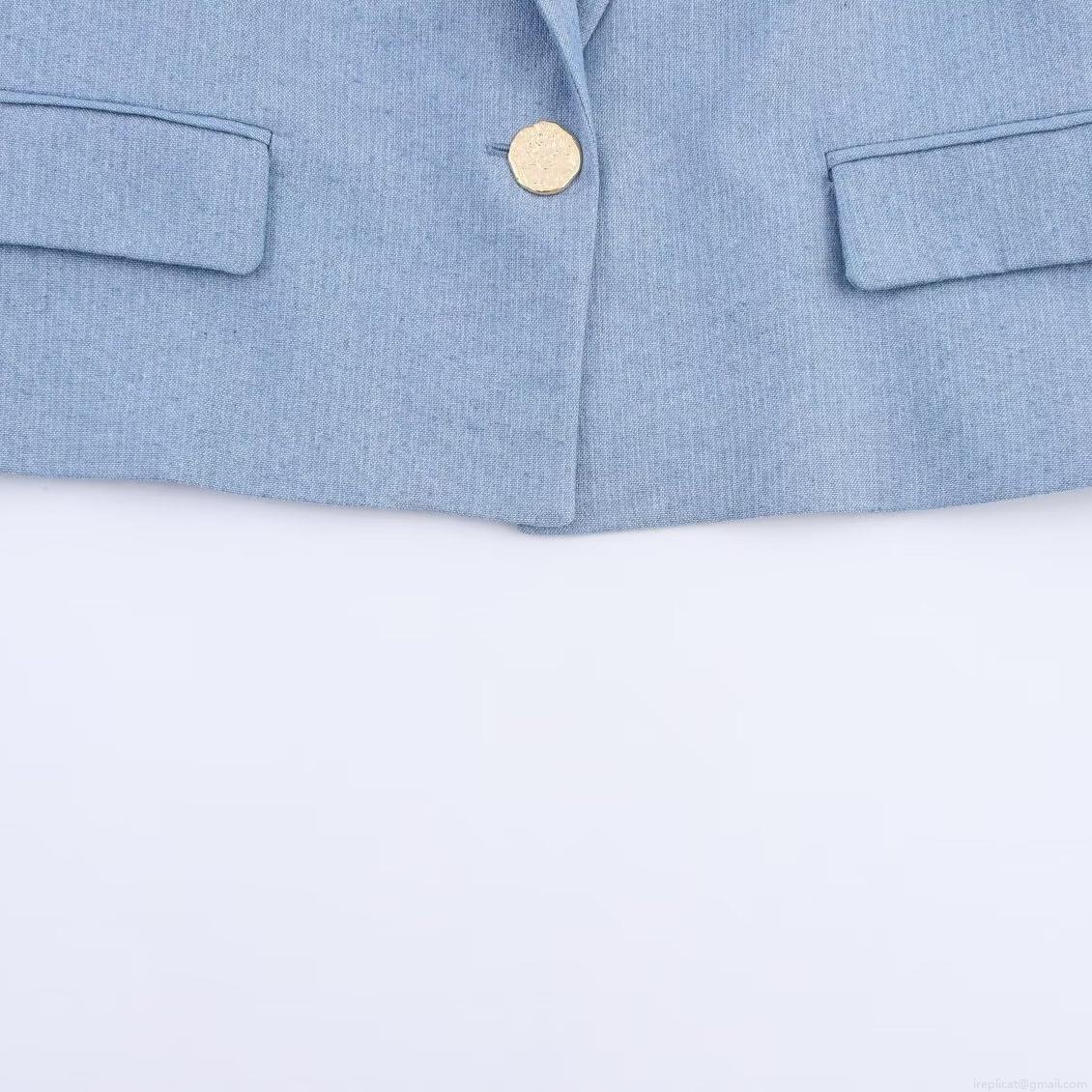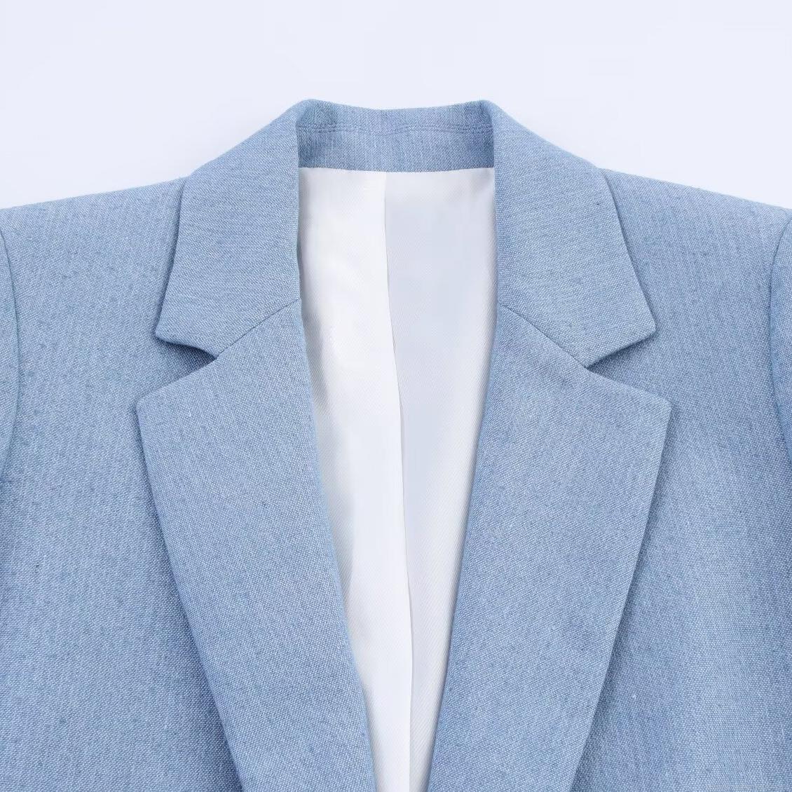 • Women's Elegant Light Blue Two-Piece Suit Set Short Sleeve Single Button Blazer And High Waist Straight Leg Pants Commuter Office Wear Polyester Spandex Outfit