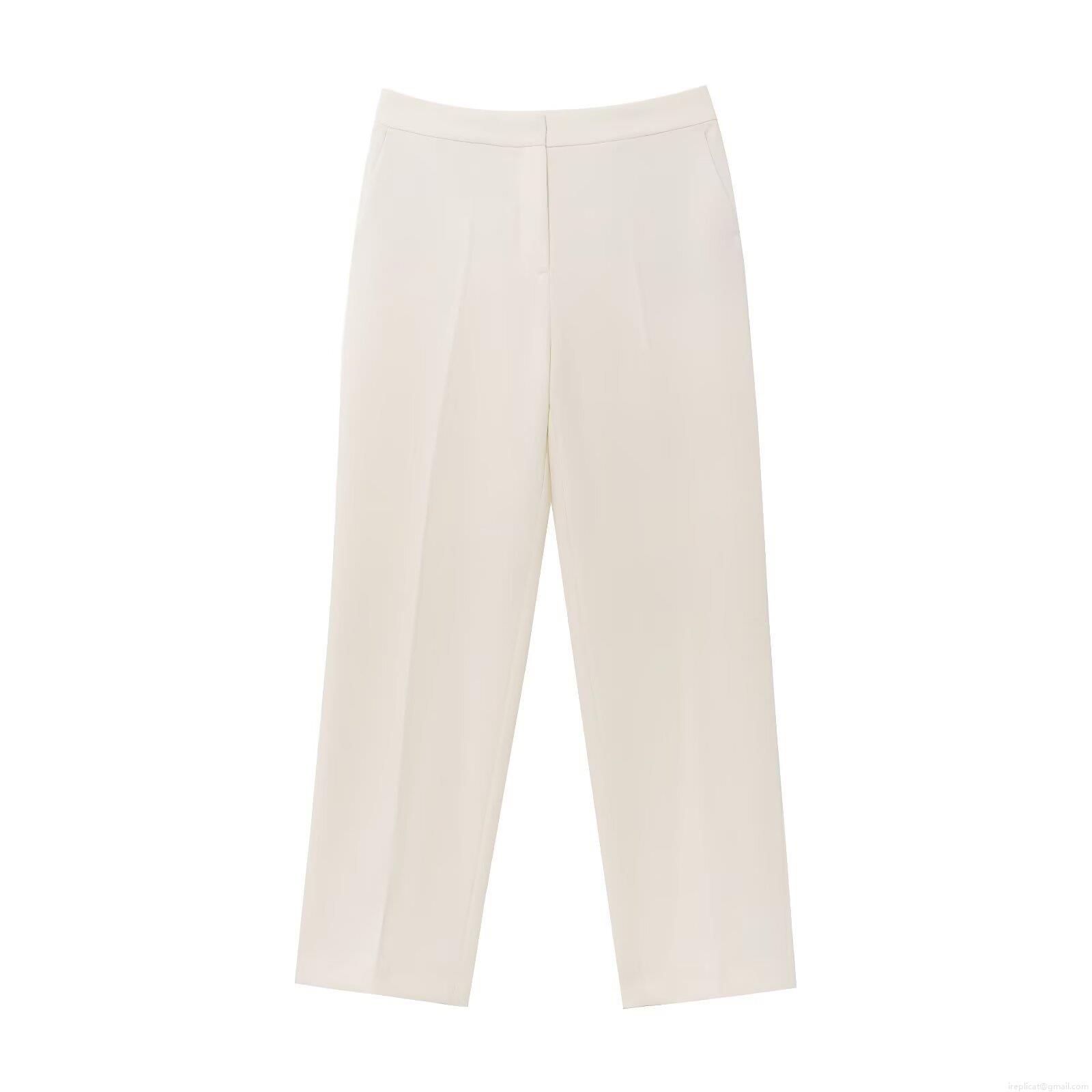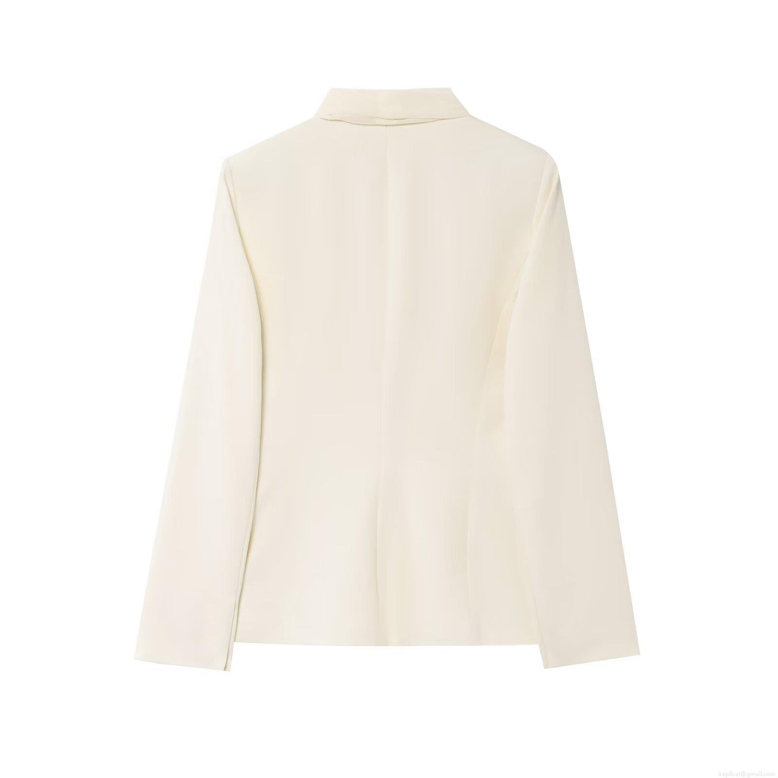 • Women's Elegant Off White Two Piece Suit Set Polyester Scarf Collar Long Sleeve Blazer And High Waisted Straight Leg Pants For Office Commute Streetwear Outfits
