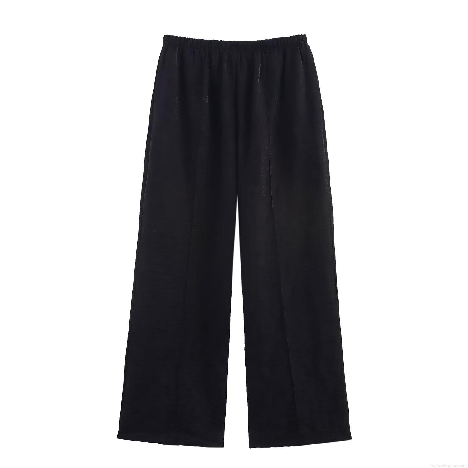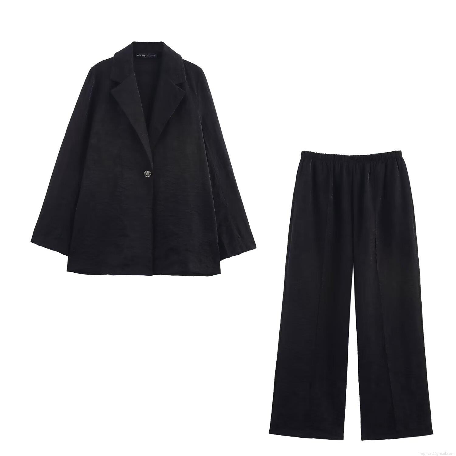 • Women's Elegant Organza Suit Set Solid Color Jacquard Blazer And Wide Leg Pants Two Piece Set Spring Summer European American Streetwear Outfit