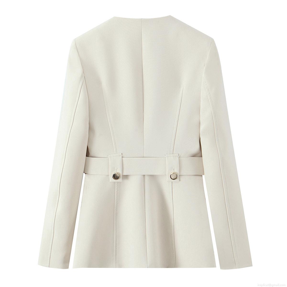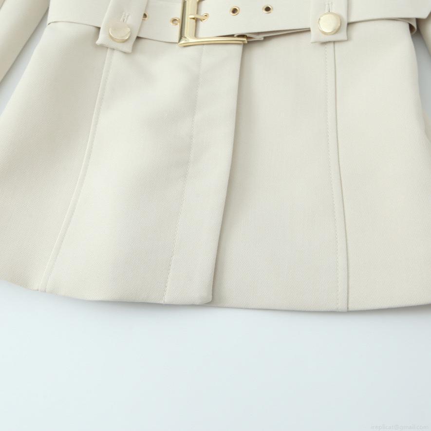 Solid Color, Splice, Collage, Buttons, Belt, Metal Buckle, Waist-cinching Design