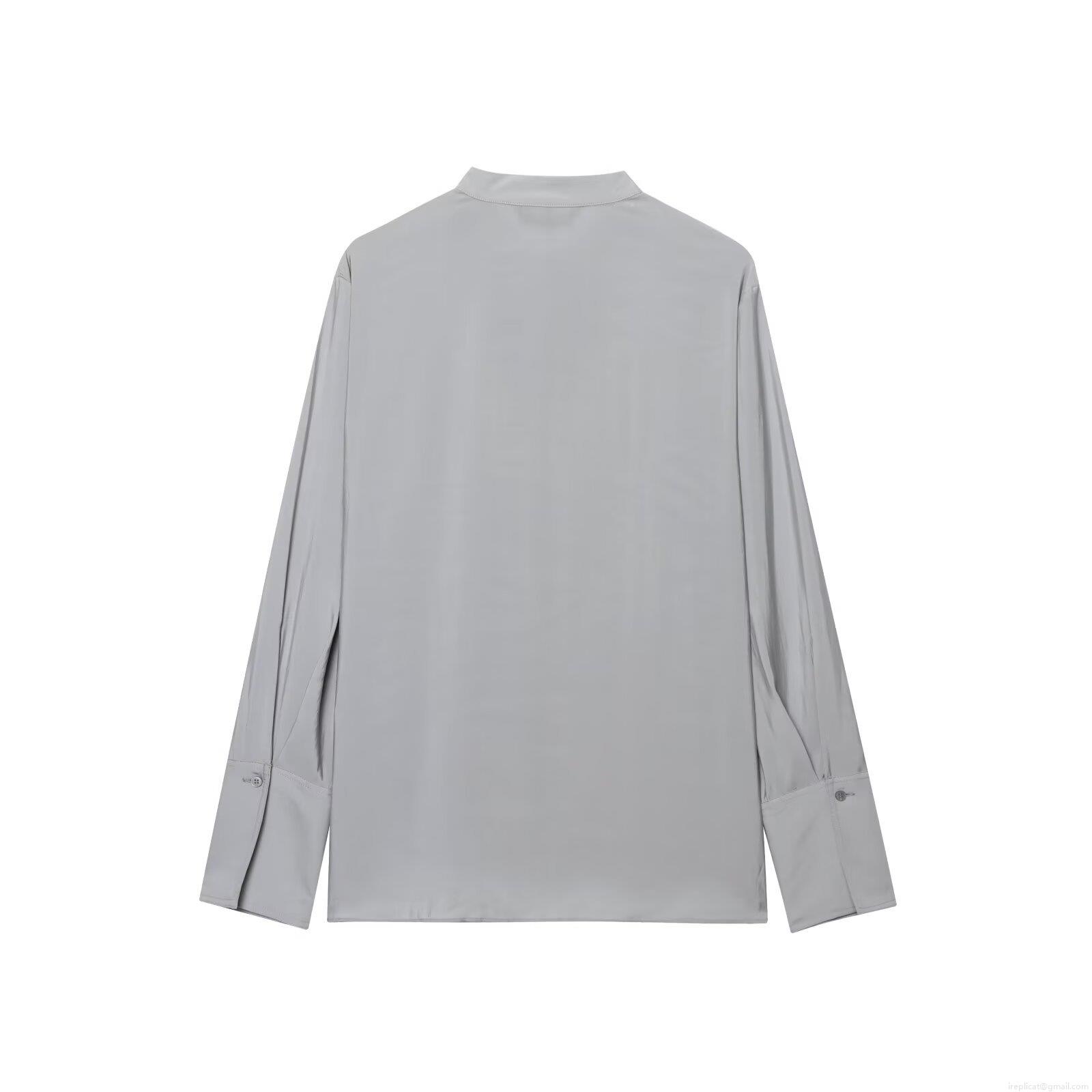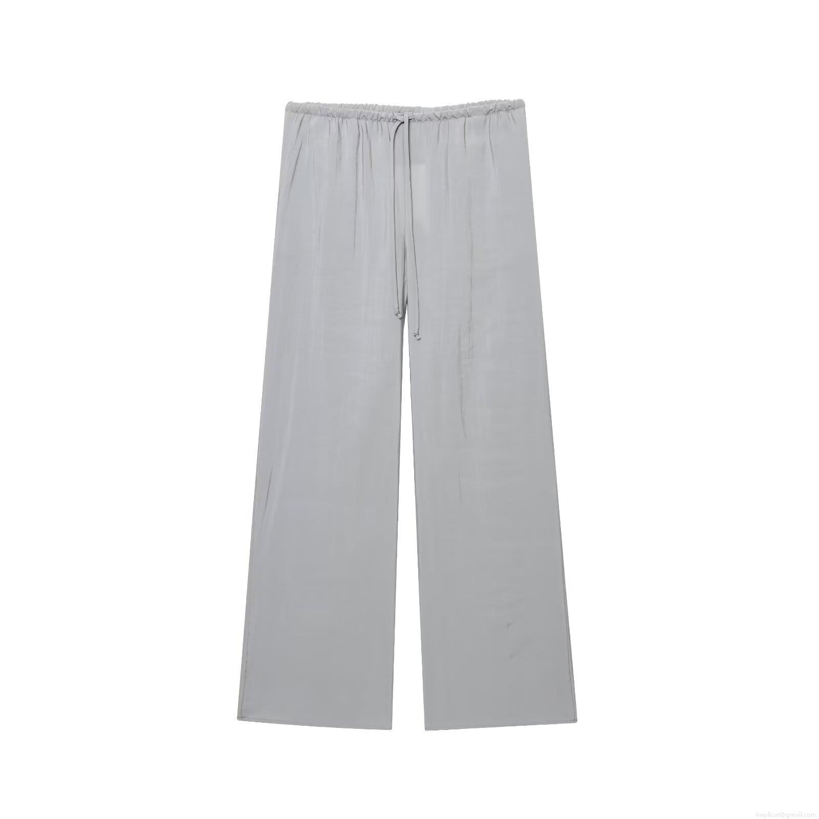 • Women's Elegant Satin Two Piece Set Long Sleeve Stand Collar Shirt and Drawstring Wide Leg Pants Solid Color Modal Blend Outfits Streetwear Lady
