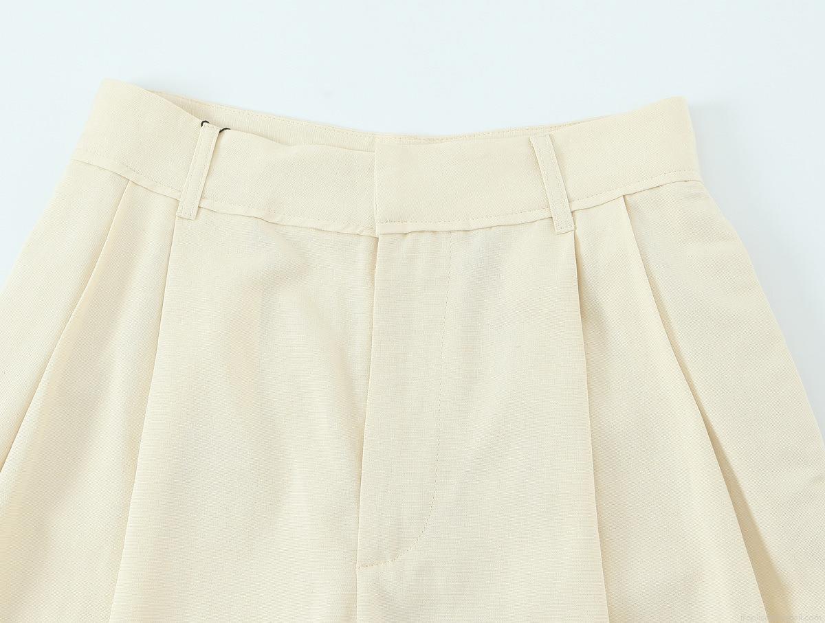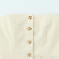 • Women's Elegant Summer Two Piece Set Off White Strapless Tube Top with Buttons and High Waisted Wide Leg Trousers Casual Commuter Polyester Spandex Outfit
