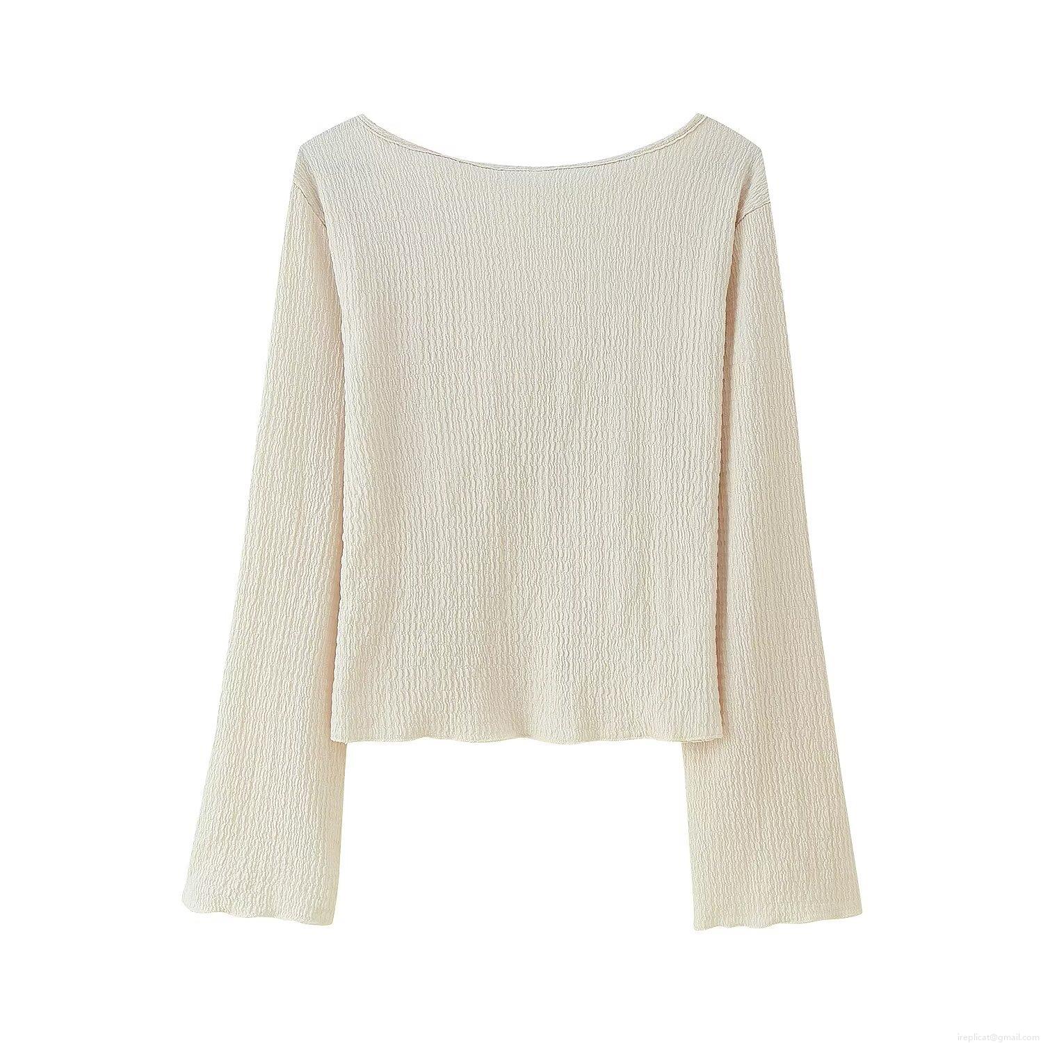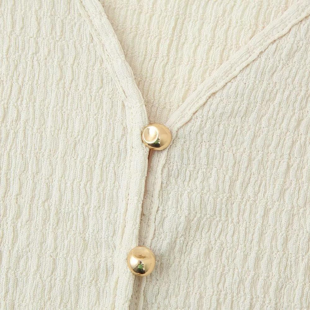 • Women's Elegant Texture V-Neck Long Sleeve Button Up Top and Wide Leg Pants Two Piece Set Casual Loungewear Outfit Solid Color Crinkled Fabric Set