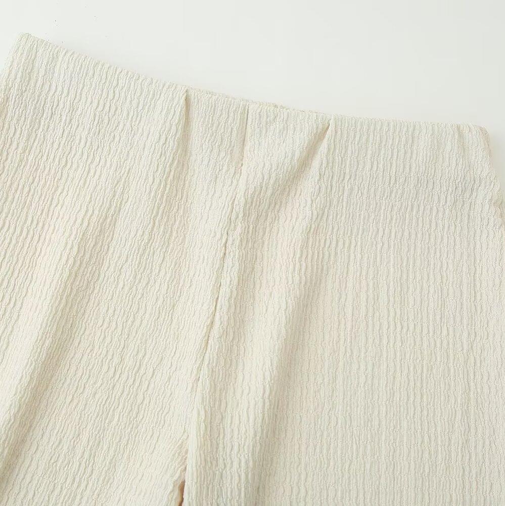 Solid Color, V-neck, Wide-leg Pants, Single-breasted, Wrinkled Texture, Vertical Stripe Texture