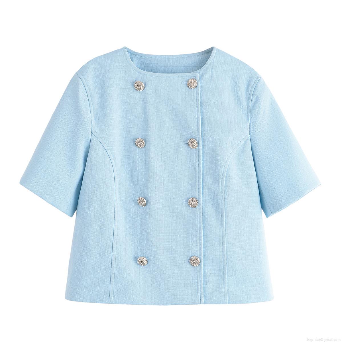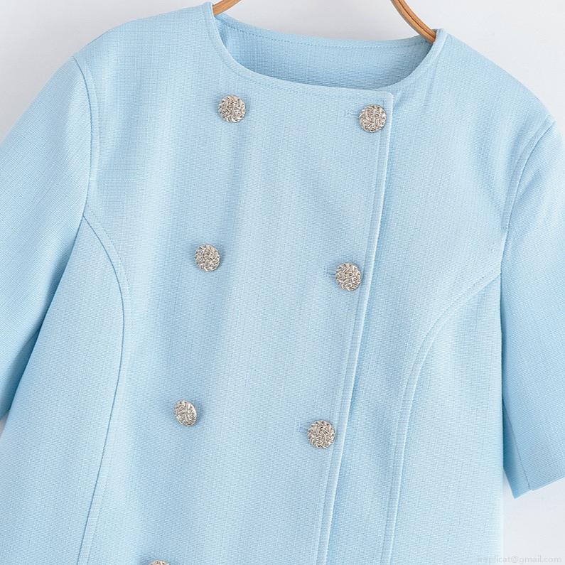 Solid Color, Buttons, Tweed, Metal Buckle, Double-breasted, Woven Texture