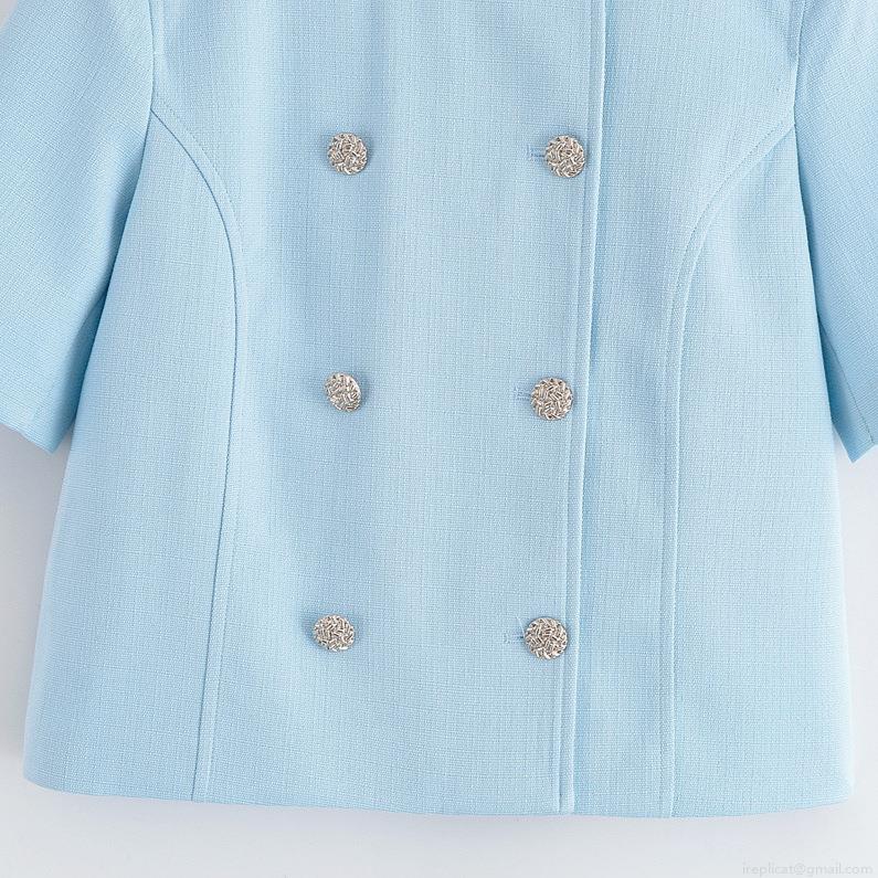 • Women's Elegant Tweed 2-Piece Outfit Short Sleeve Double Breasted Top And High Waist Wide Leg Pants Summer Commute Fashion Suits For Ladies