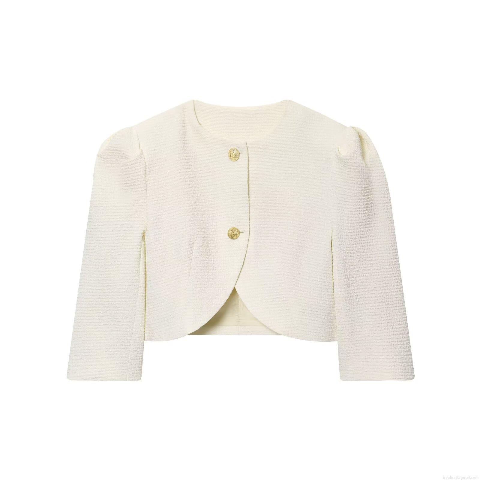 • Women's Elegant Tweed Cropped Blazer And Satin Wide Leg Pants Two Piece Set With Gold Buttons Puff Sleeve Western Street Style Outfit For Ladies Autumn Fall