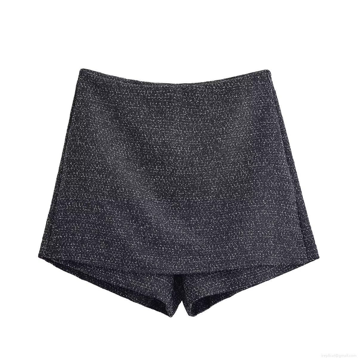• Women's Elegant Tweed Two-Piece Set Round Neck Jacket With Belt And High Waist Skort Shorts Gold Metal Buttons Chic Streetwear Autumn Winter Outfit