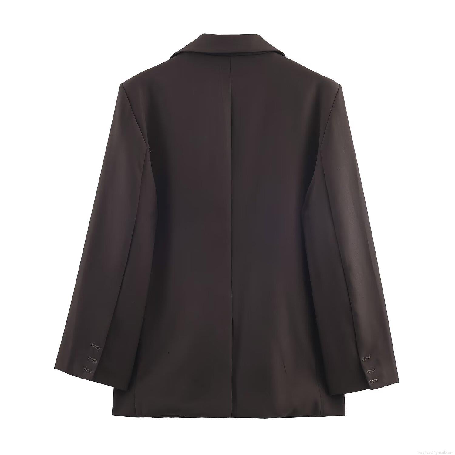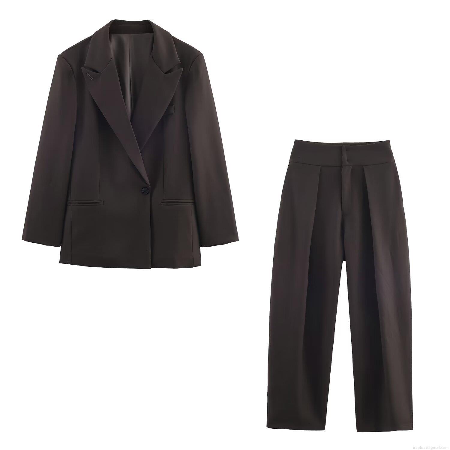 • Women's Elegant Two Piece Blazer and Pants Set Solid Color Double Breasted Loose Fit Office Lady Suits Outfits Streetwear Casual Wide Leg Trousers