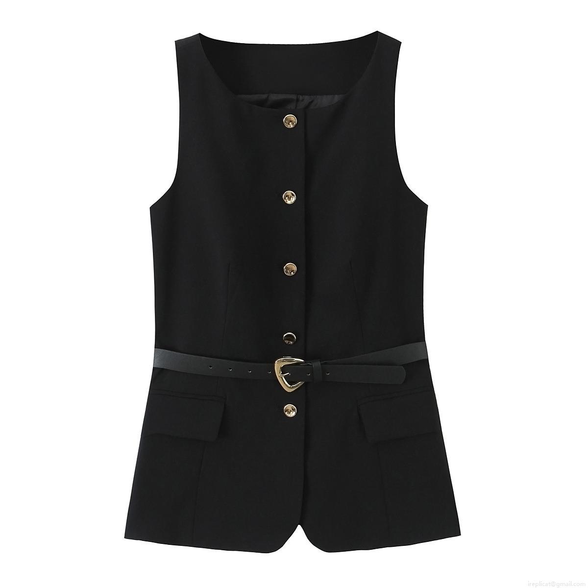 • Women's Elegant Two Piece Set Sleeveless Vest and Flared Pants Suit with Heart Buckle Belt Gold Buttons Polyester Blend Formal Office Streetwear Casual Outfit Black