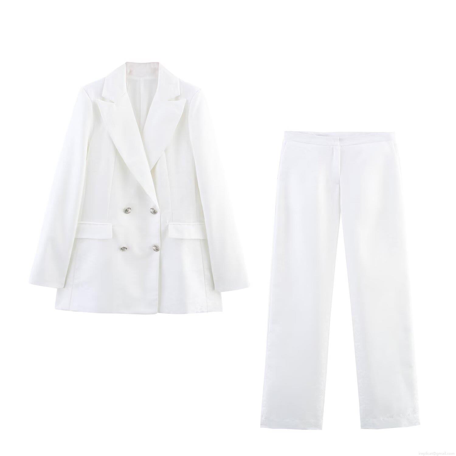 • Women's Elegant White Blazer Suit Two-Piece Set Double-Breasted Jacquard Blazer and High Waist Straight-Leg Pants for Professional Office Lady Formal Evening Wear