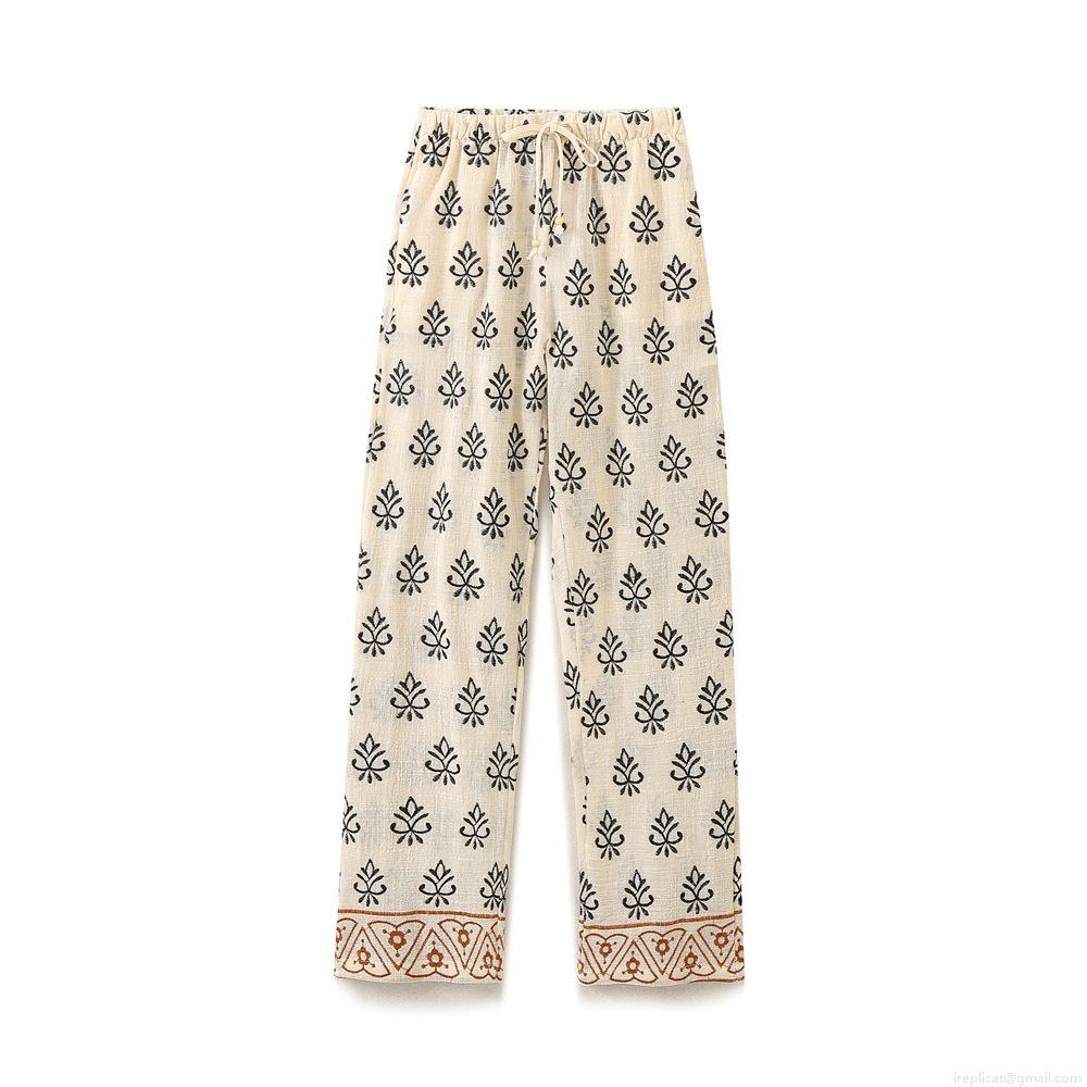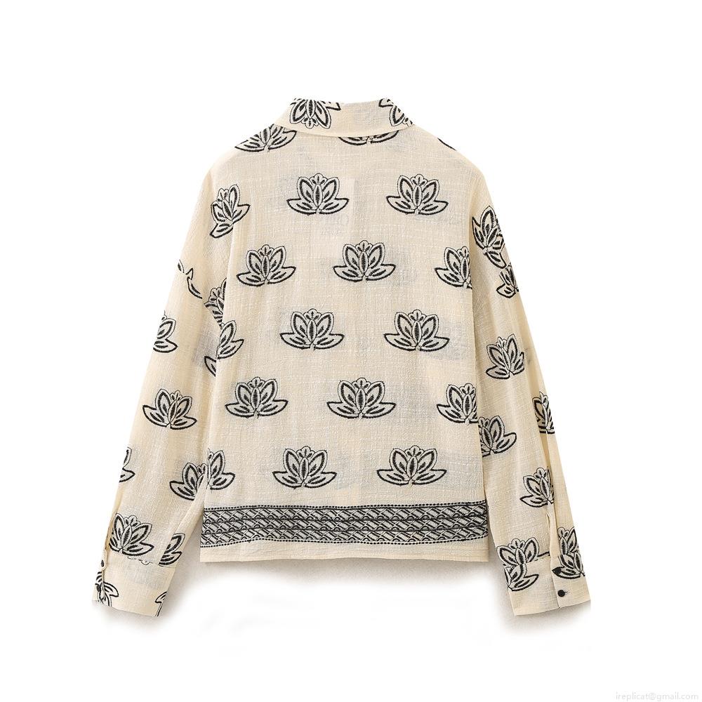 • Women's Ethnic Embroidery Cotton Polyester Vacation Two Piece Set Lotus Print Shirt And Elastic Waist Pants Casual Streetwear Long Sleeve Blouse Set