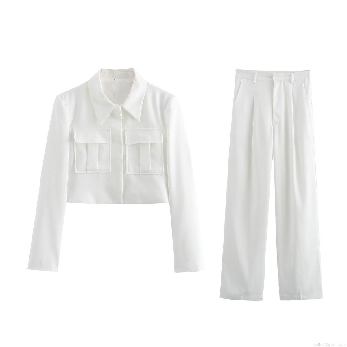 Solid Color, Lapel, Wide-leg, High-waisted, Short Design, Fabric-covered Buttons, Double-sided Bag