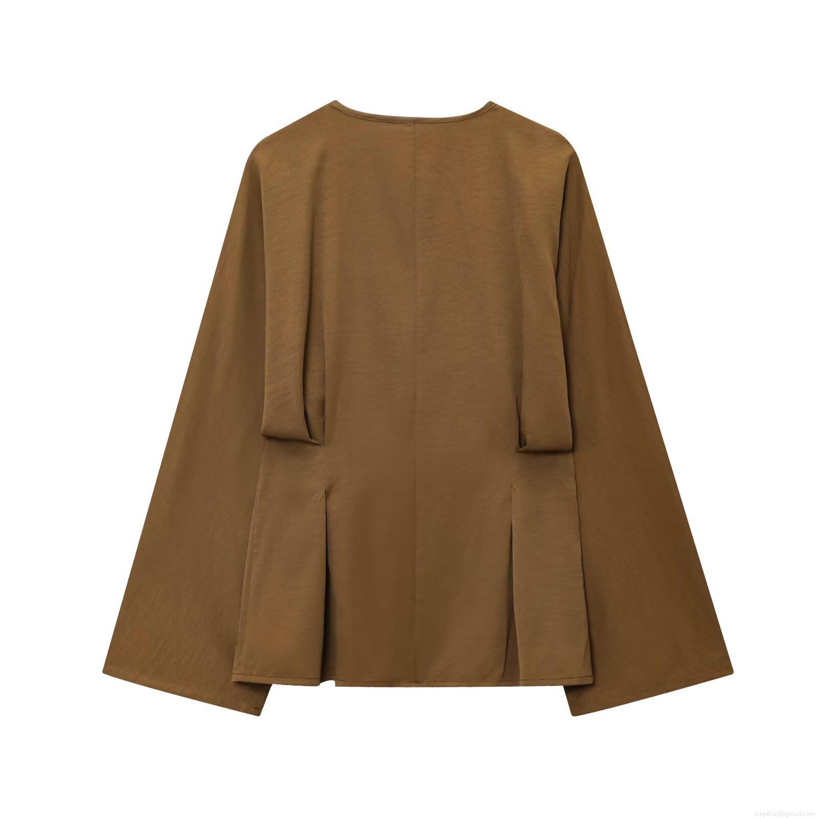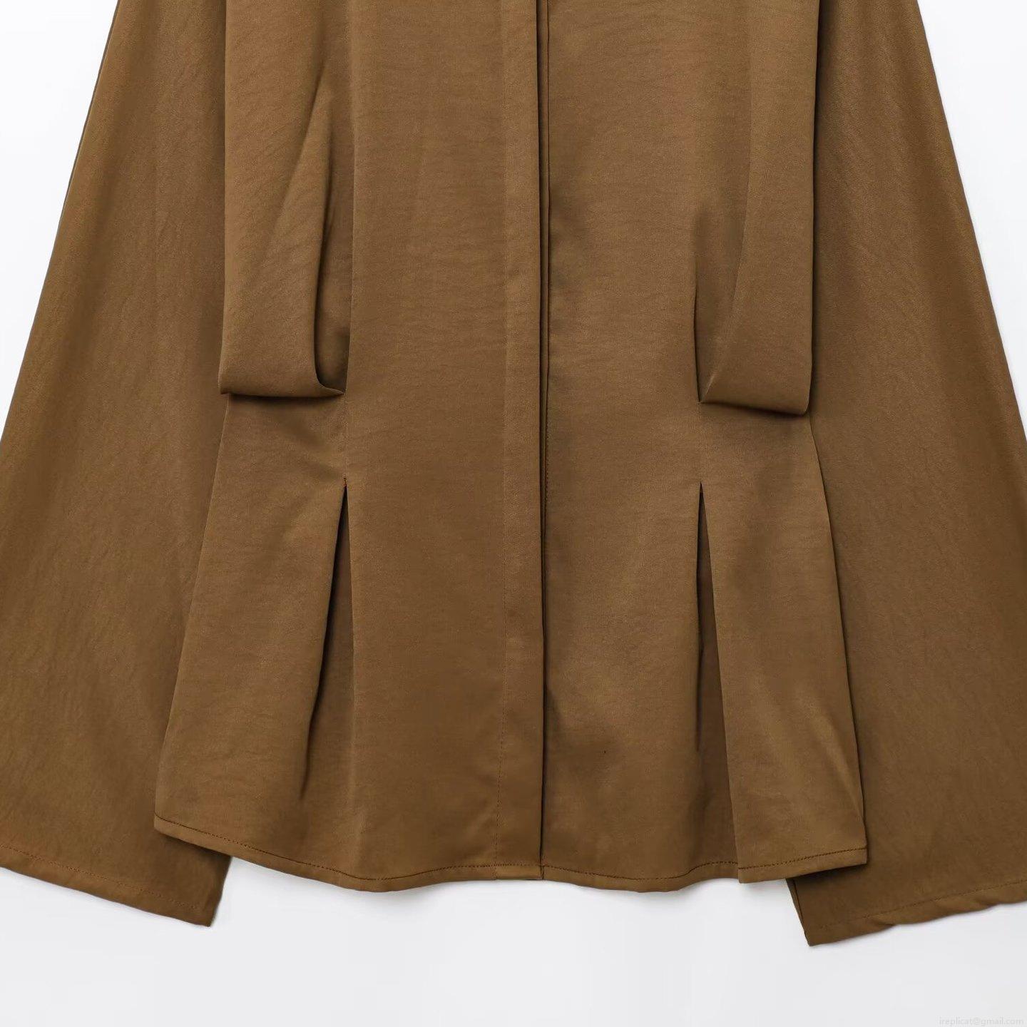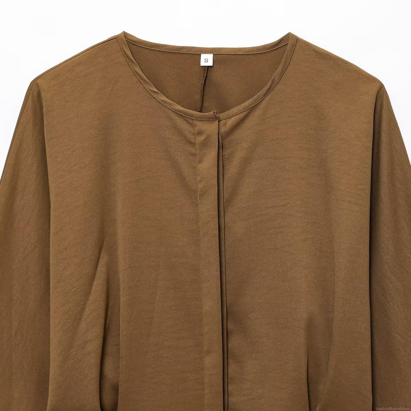 • Women's Fashion Casual Two Piece Set Minimalist Pleated Long Sleeve Shirt and Elastic Waist Wide Leg Pants Set Solid Color Loose Lounge Wear
