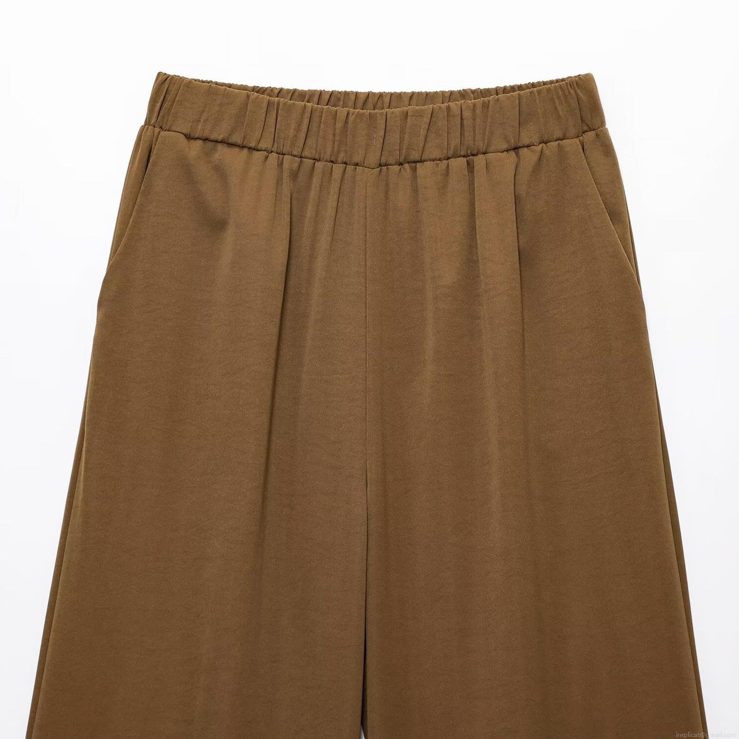 Solid Color, Elastic Waistband, Pleated Design, Wide-leg Style