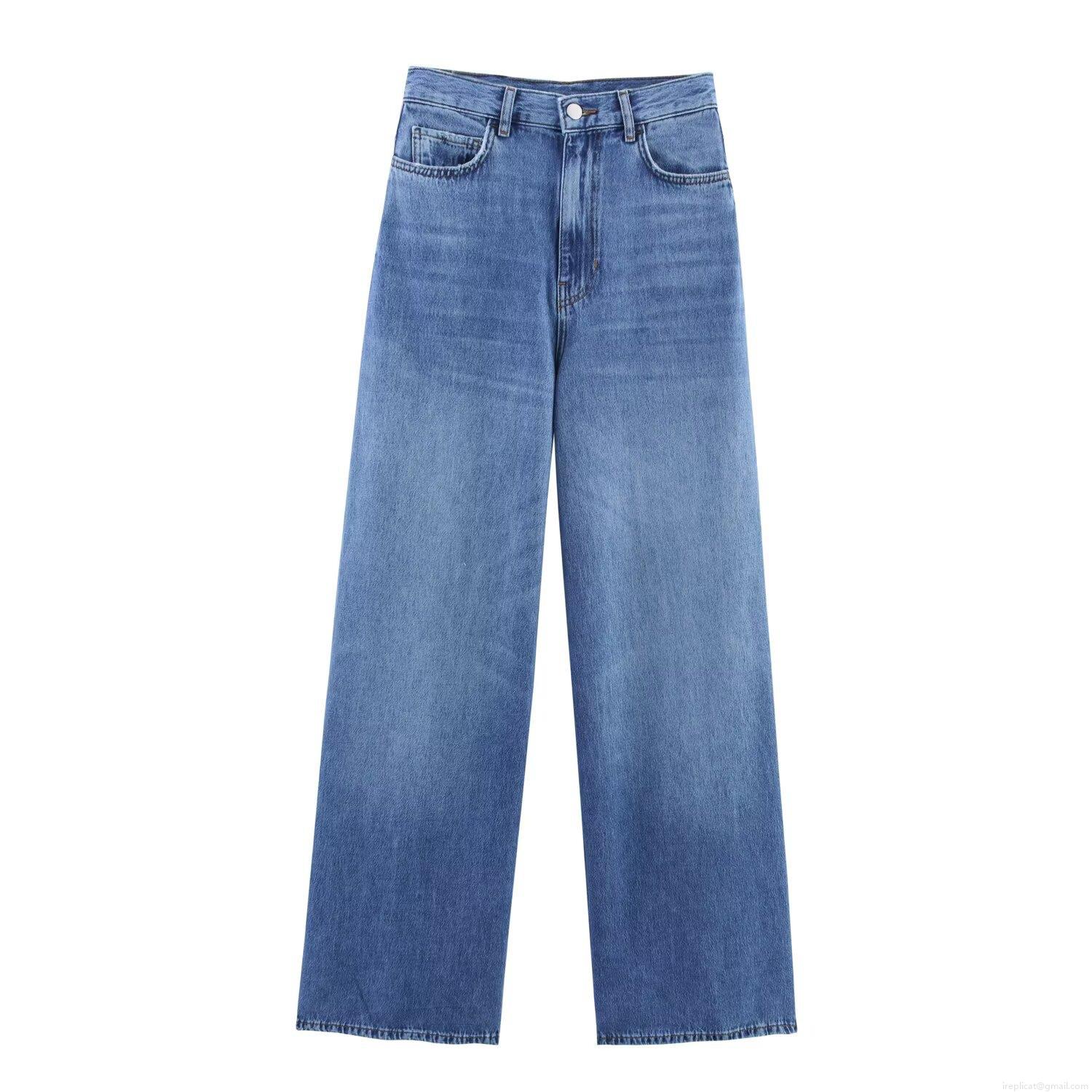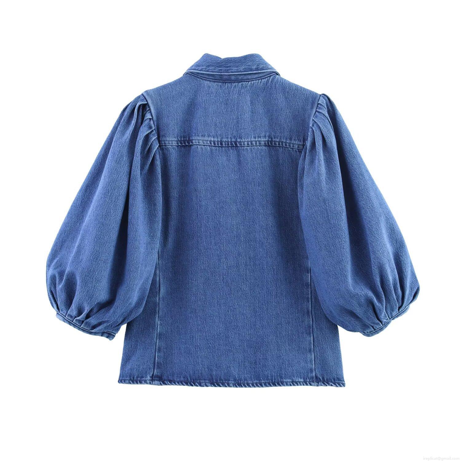 • Women's Fashion Denim Shirt Puff Sleeve Blouse and High Waist Wide Leg Pants Two Piece Set Casual Streetwear Outfits Cotton Blend Denim