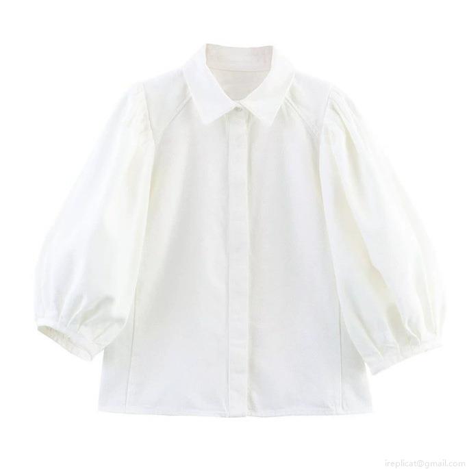 Women's Fashion Denim Shirt Puff Sleeve Blouse and High Waist Wide Leg Pants Two Piece Set Casual Streetwear Outfits Cotton Blend Denim