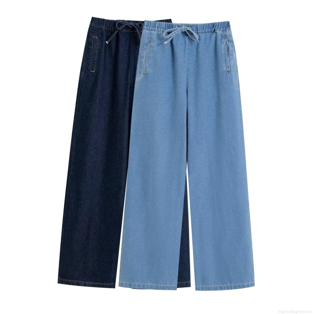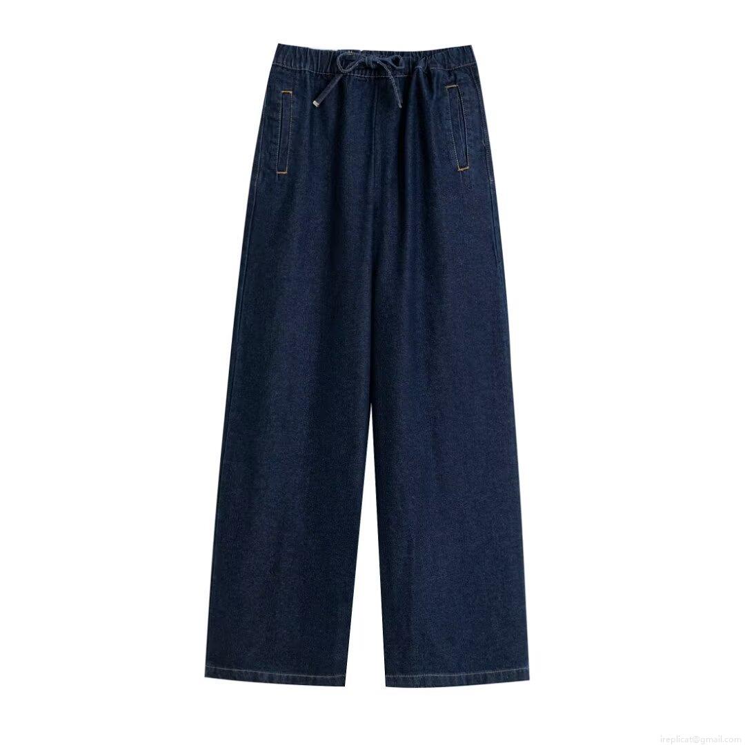 • Women's Fashion Denim Style Set Long Sleeve Button Down Short Jacket Top And Drawstring Elastic Waist Straight Leg Pants 2 Piece Outfits Casual Streetwear Trousers Suit