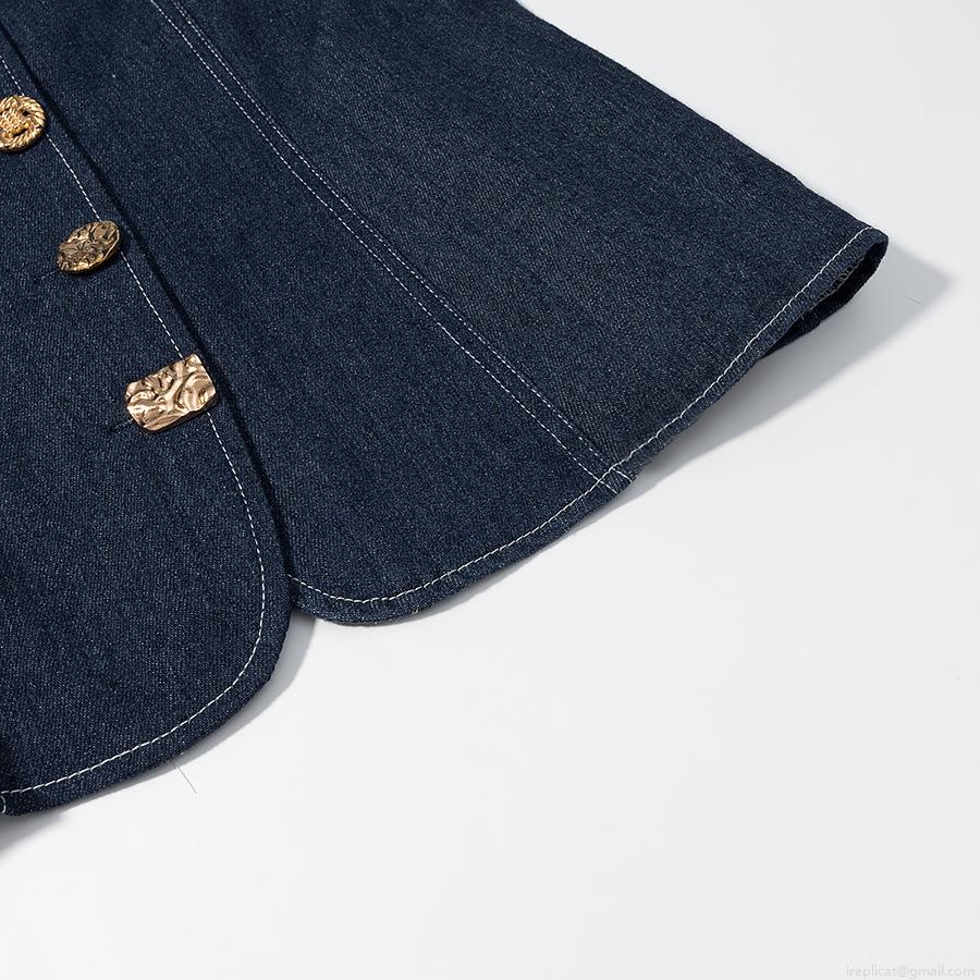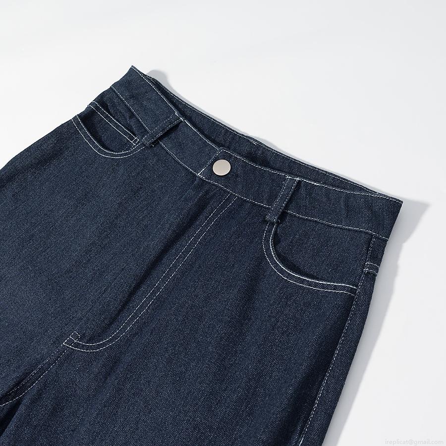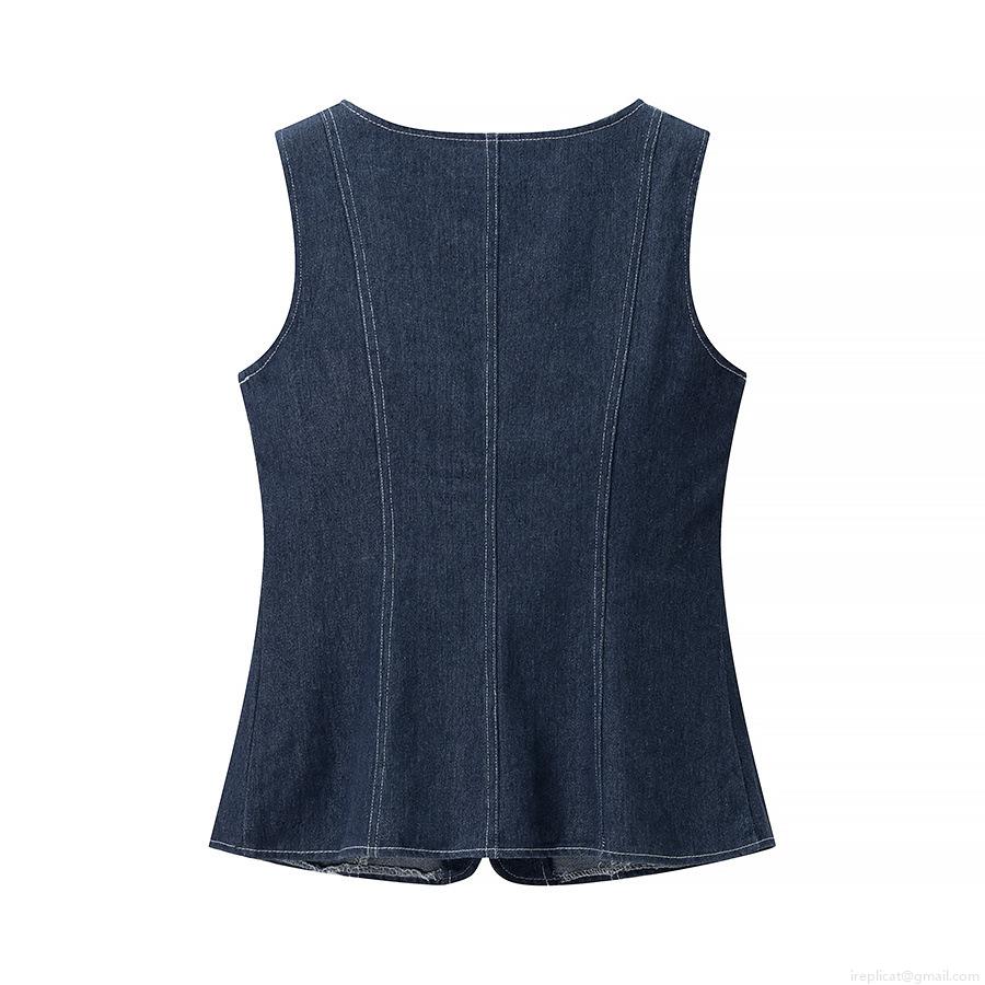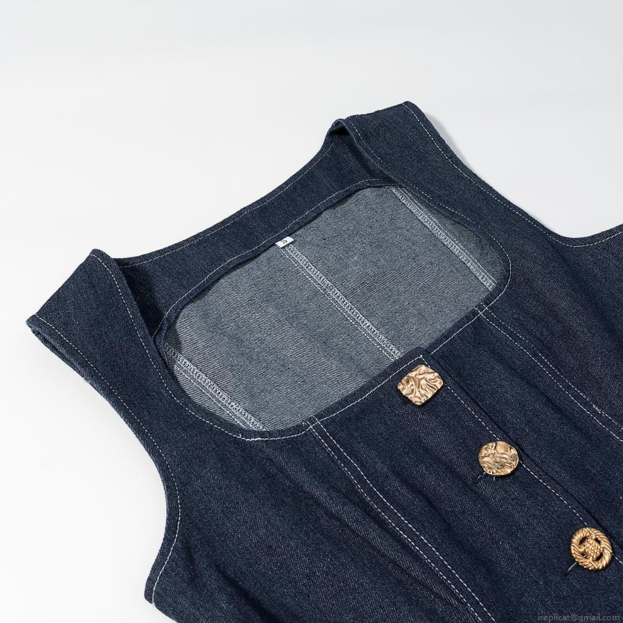 • Women's Fashion Denim Two Piece Set Casual Dark Blue Square Neck Button Vest Top And High Waist Wide Leg Straight Trousers Elegant Outfits For Daily Commute