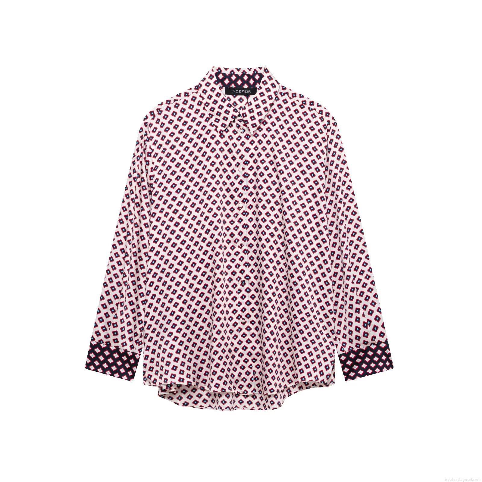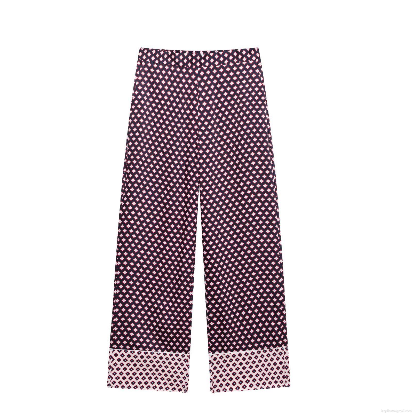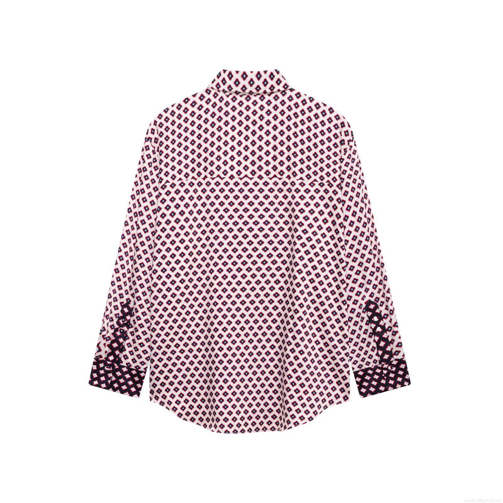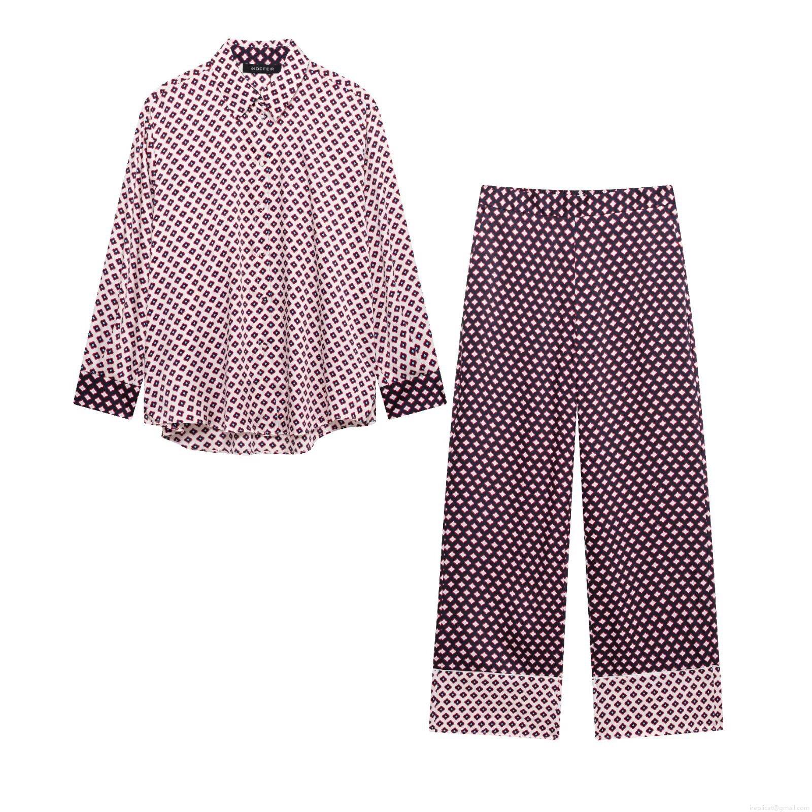 • Women's Fashion Geometric Print Polyester Blended Shirt and Wide Leg Pants Set Elegant Satin Texture Long Sleeve Button Down Blouse and Elastic Waist Trousers Two Piece Outfits for Streetwear Clubwear