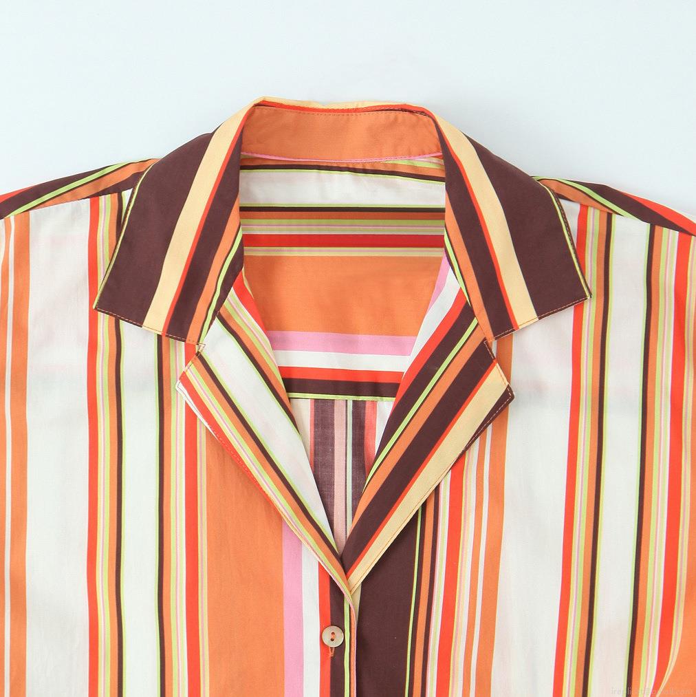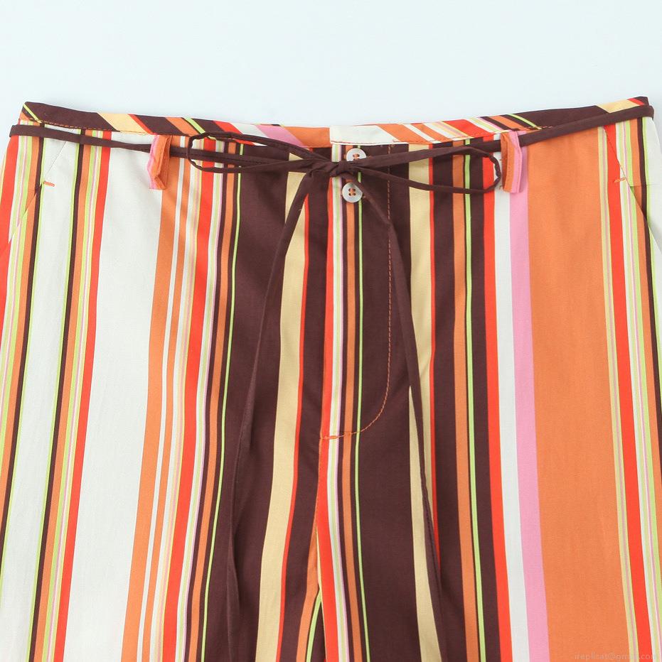 • Women's Fashion Multicolor Vertical Striped Casual Pajama Style Set Long Sleeve Shirt And Wide Leg Pants Two Piece Outfits For Summer Vacation