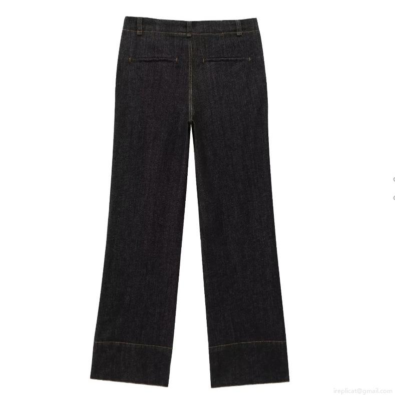 • Women's Fashion Slim Denim Shirt and High Waisted Straight Leg Pants Two-Piece Set Long Sleeve Button Down Top with Contrast Stitching Streetwear Suit