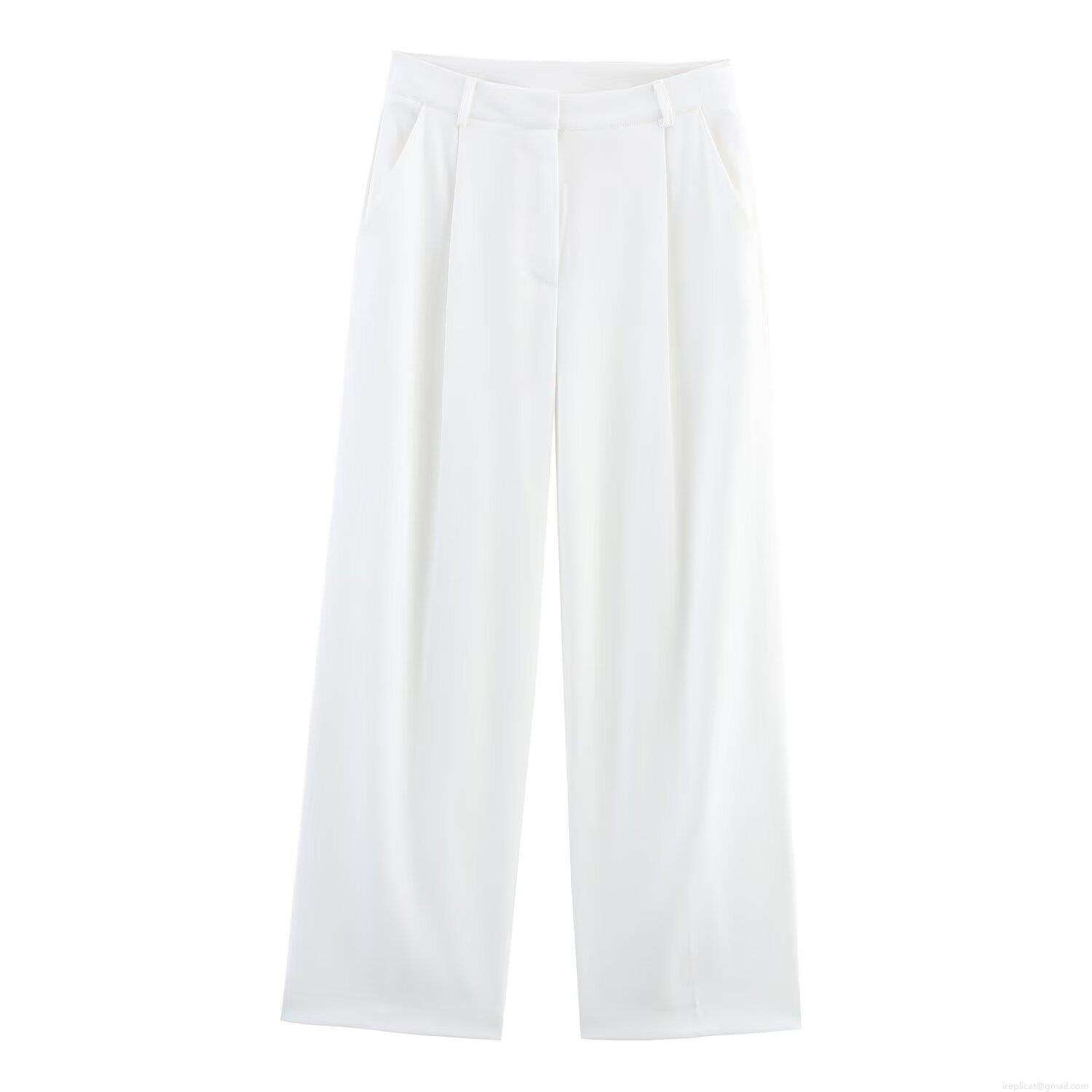 Solid Color, Pleats, Neckband, Wide-leg, Ribbon Bow
