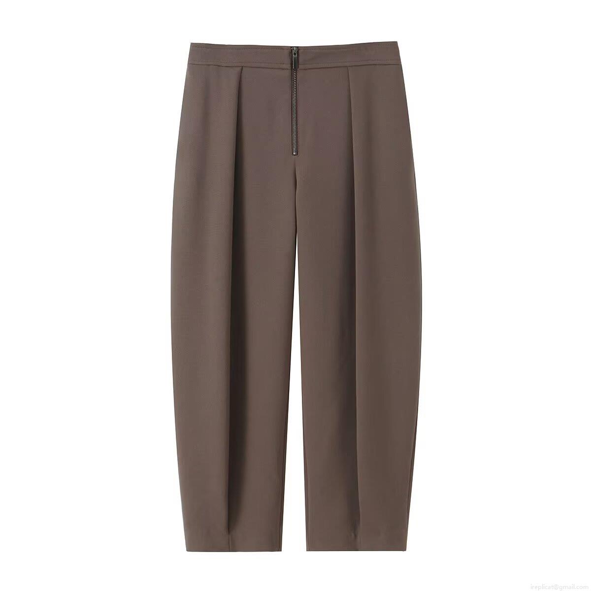 Solid Color, Shoulder Pads, Wide-leg, Double-breasted, High-waisted, Contrasting Stitching, Notch Collar
