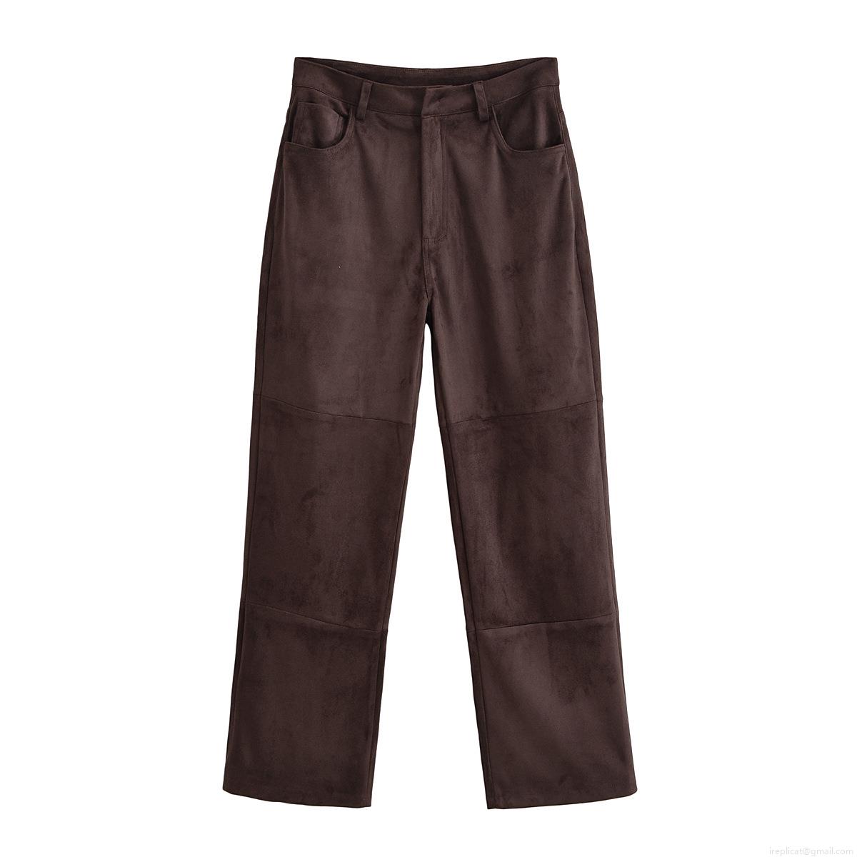 • Women's Faux Suede Two Piece Set Long Sleeve Button Down Shirt And Straight Leg Pants Solid Color Casual Retro Streetwear Tracksuit For Daily Wear