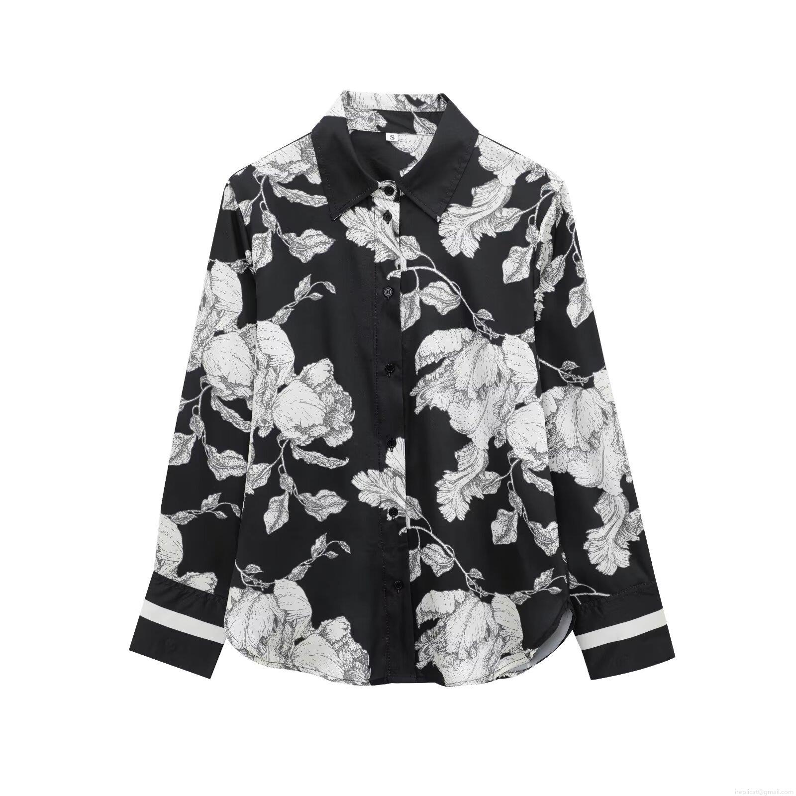 • Women's Floral Abstract Print Satin Pajamas Set Two Piece Long Sleeve Lapel Shirt And High Waist Wide Leg Pants Casual Lounge Streetwear Fashion Set