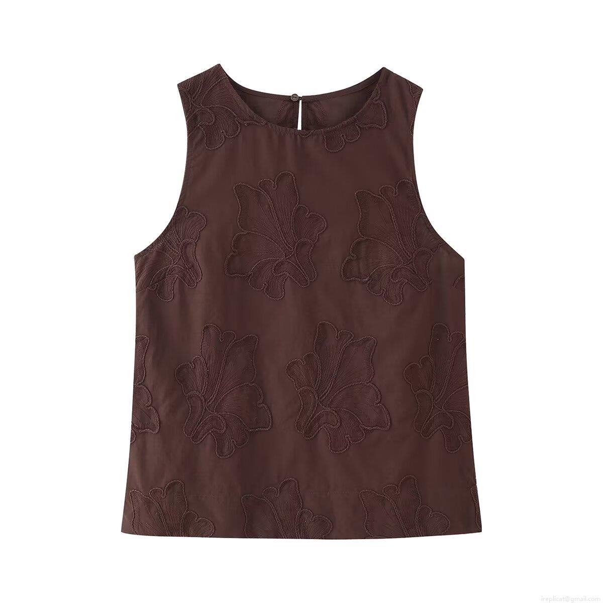 • Women's Floral Embroidery Two Piece Set Sleeveless Round Neck Top And Wide Leg Pants Solid Color Casual Summer Leisure Outfit Fashion Streetwear