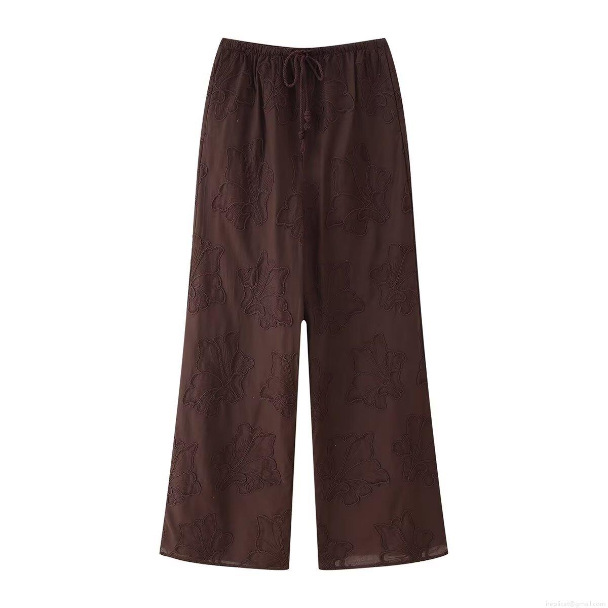 Solid Color, Embroidery, Flowers, Drawstring, Three-dimensional Flowers, Elastic Waistband