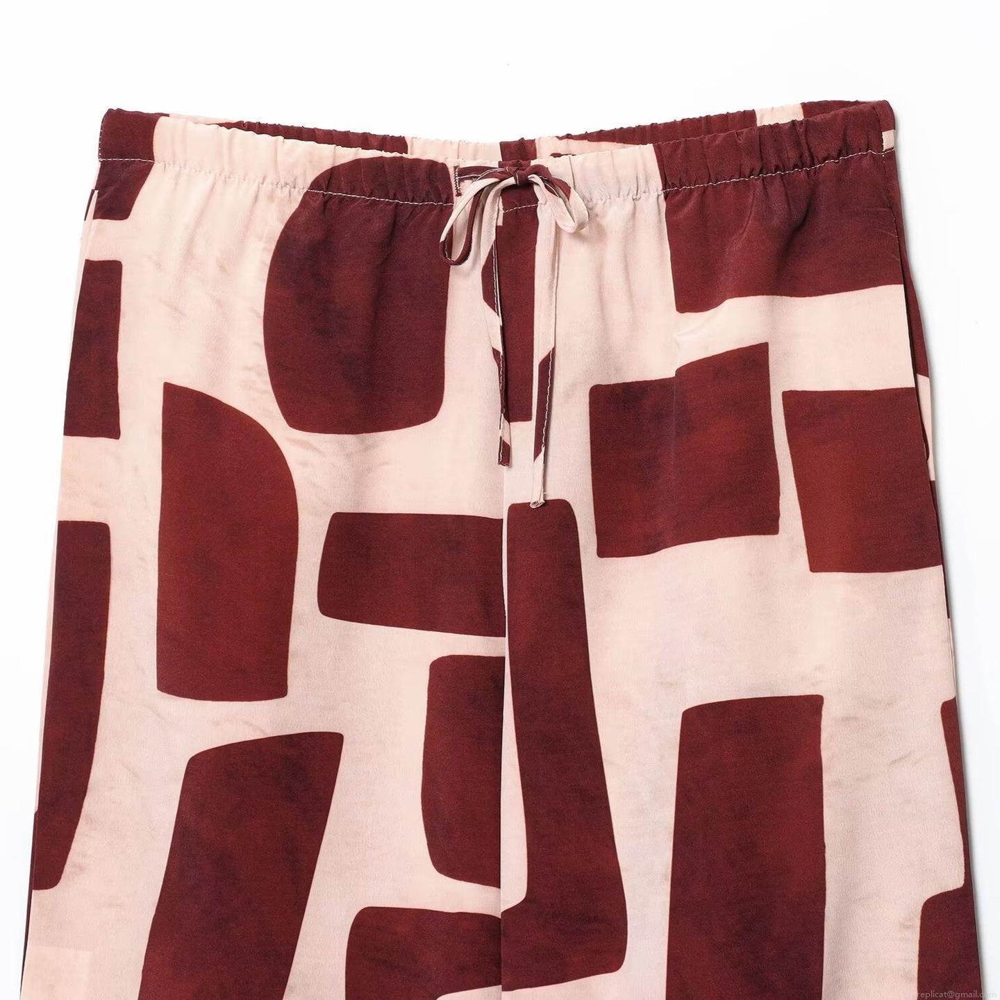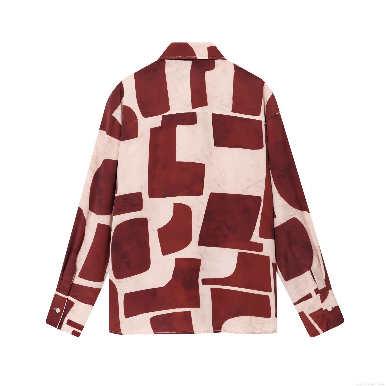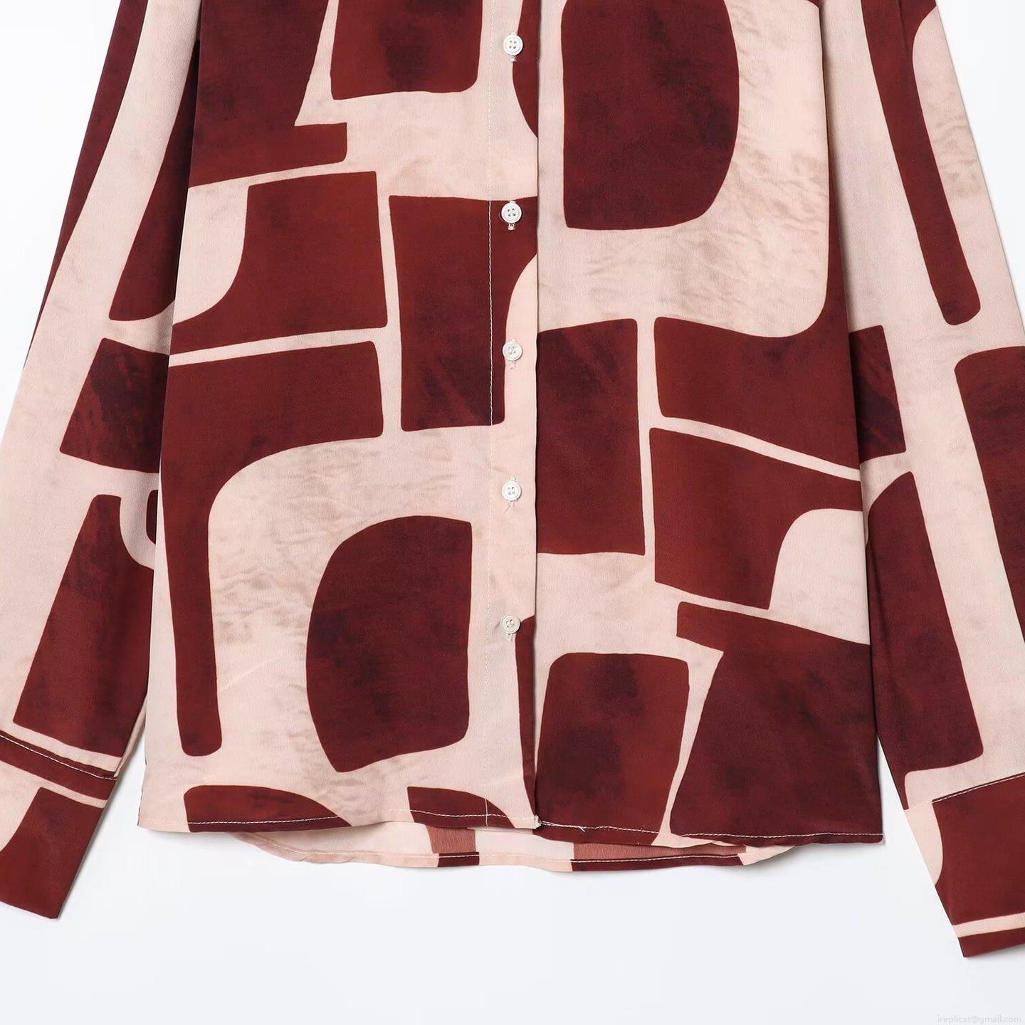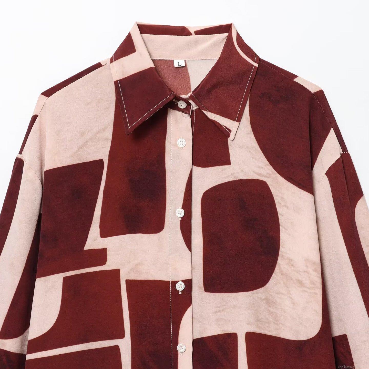 • Women's Geometric Print Long Sleeve Button Down Shirt And High Waist Wide Leg Pants Casual Loose Two Piece Set Polyester Blend Autumn Outfits
