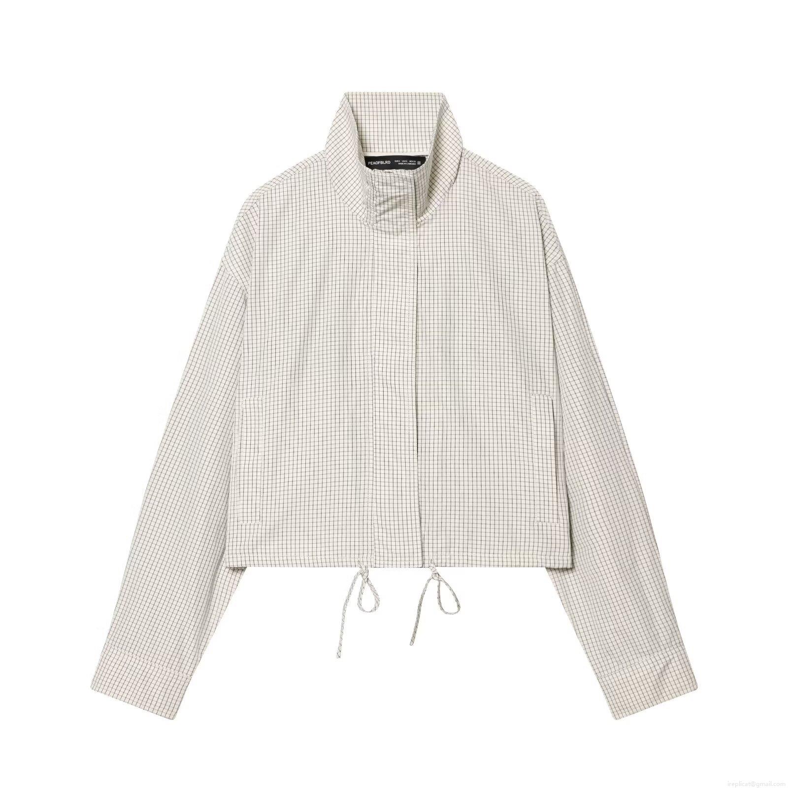 Gingham, Drawstring, Stand-up Collar, Foot Binding