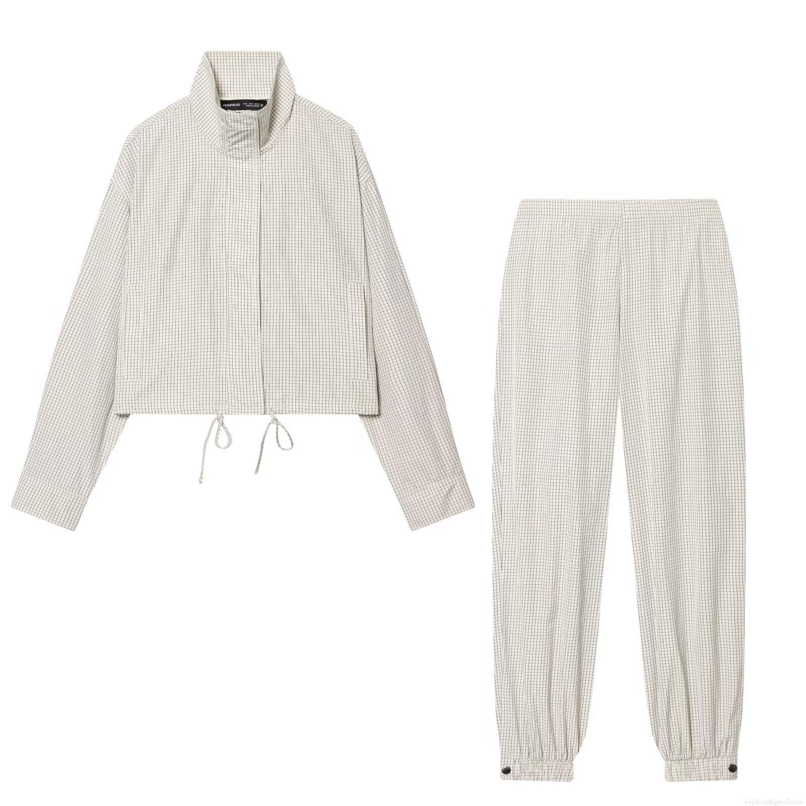 • Women's Gingham Print Casual Two-Piece Set Polyester Canvas Stand Collar Drawstring Jacket And Elastic Waist Jogger Pants Streetwear Outfit