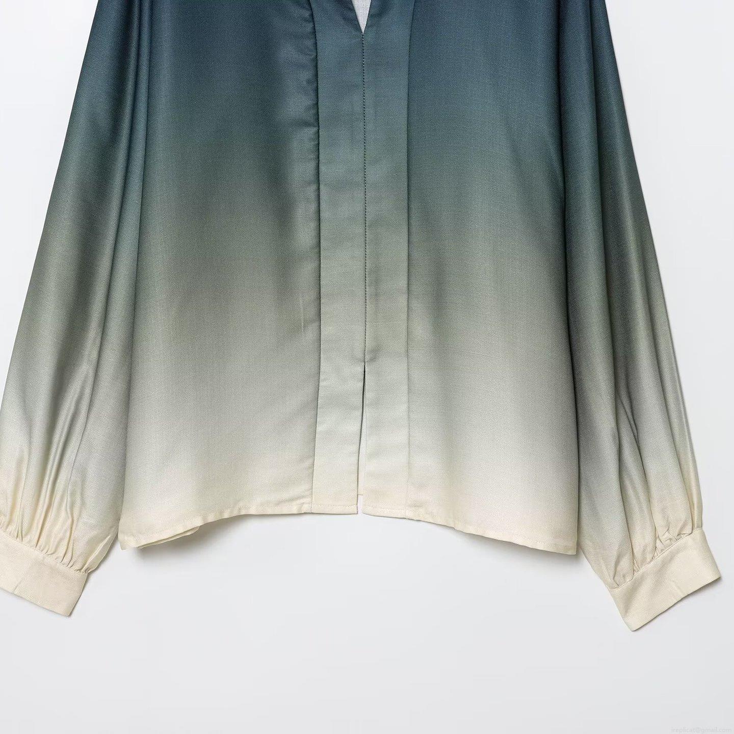 • Women's Gradient Print Two-Piece Pants Set Elegant V-Neck Long Sleeve Shirt And Wide Leg Trousers Polyester Spandex Casual Outfits