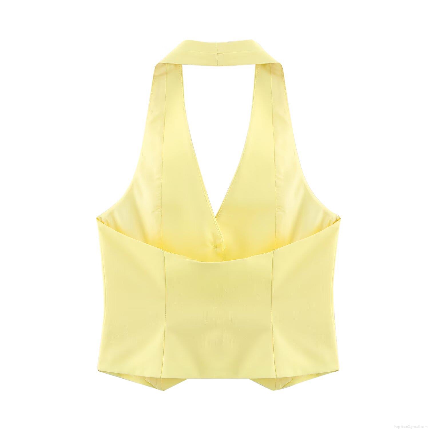 • Women's Halter Neck Sleeveless Vest Top And High Waist Wide Leg Pants Two Piece Set Solid Color Polyester Suit For Summer Office Vacation Daily