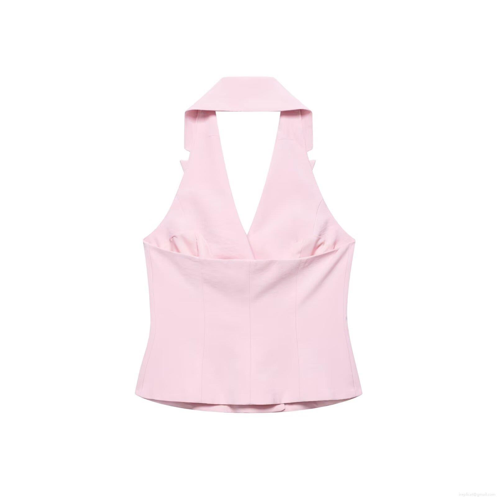 • Women's Halter Vest and Wide Leg Pants Set 100% Polyester Double Breasted V Neck Sleeveless Backless High Waist Trousers For Work Office Daily Wear Elegant Modern Style